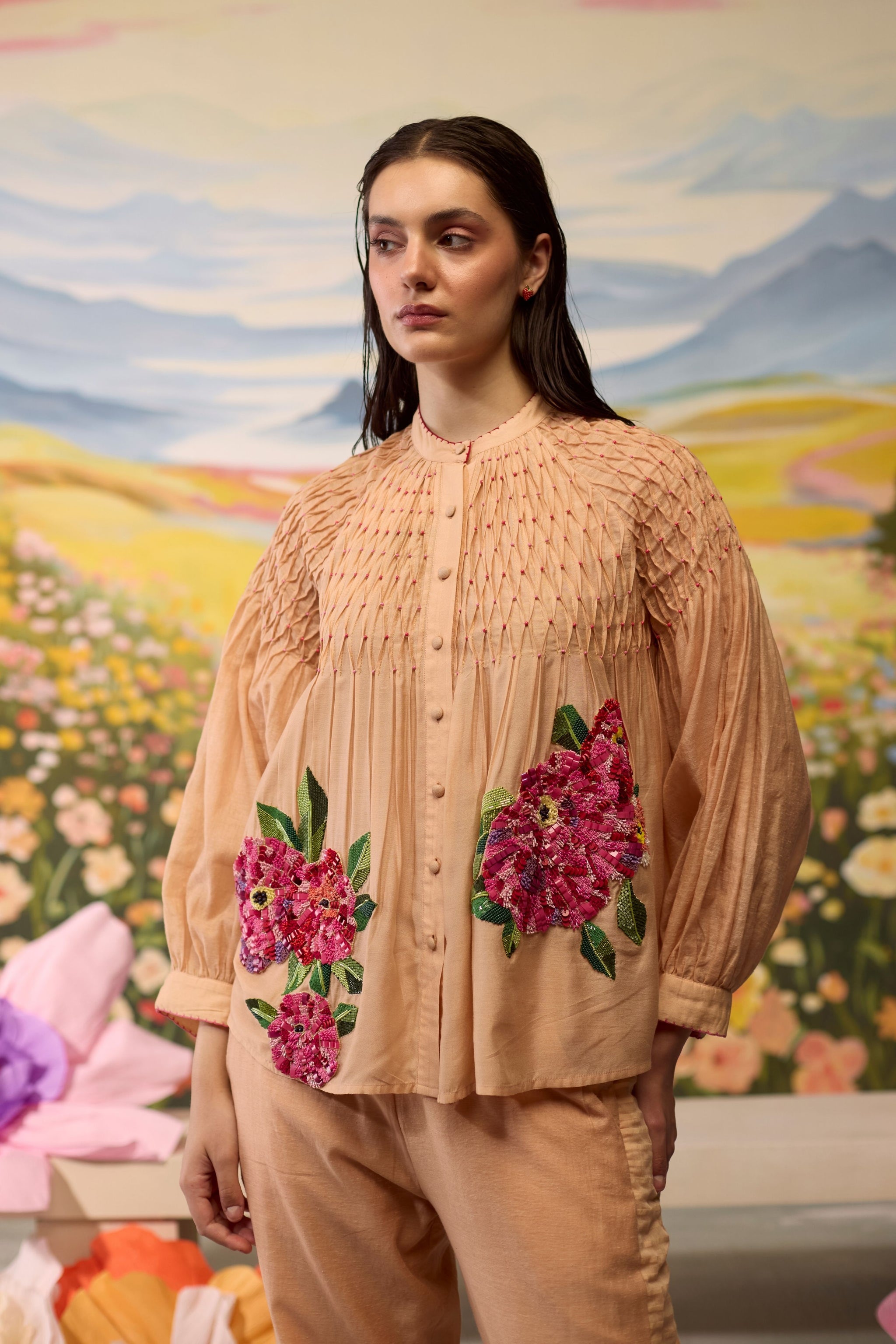 Care: Dry Clean Only. As garments are handmade and handwoven, natural variations in colours and weaves are a characteristic of the textile, and may be found in the finished garments as well.