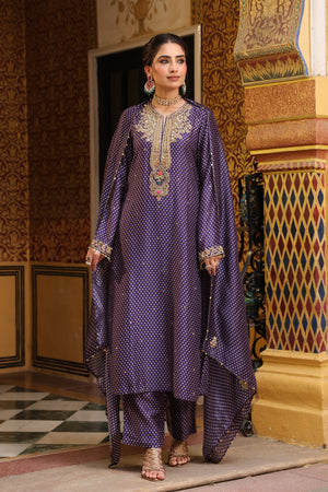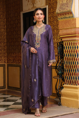 • This elegant 3-piece printed kurta set features intricate embroidery on the neckline and sleeves of the kurta, adding a refined touch to the ensemble. It is paired with printed pants and a coordinated embroidered dupatta, completing the look with effortless style.