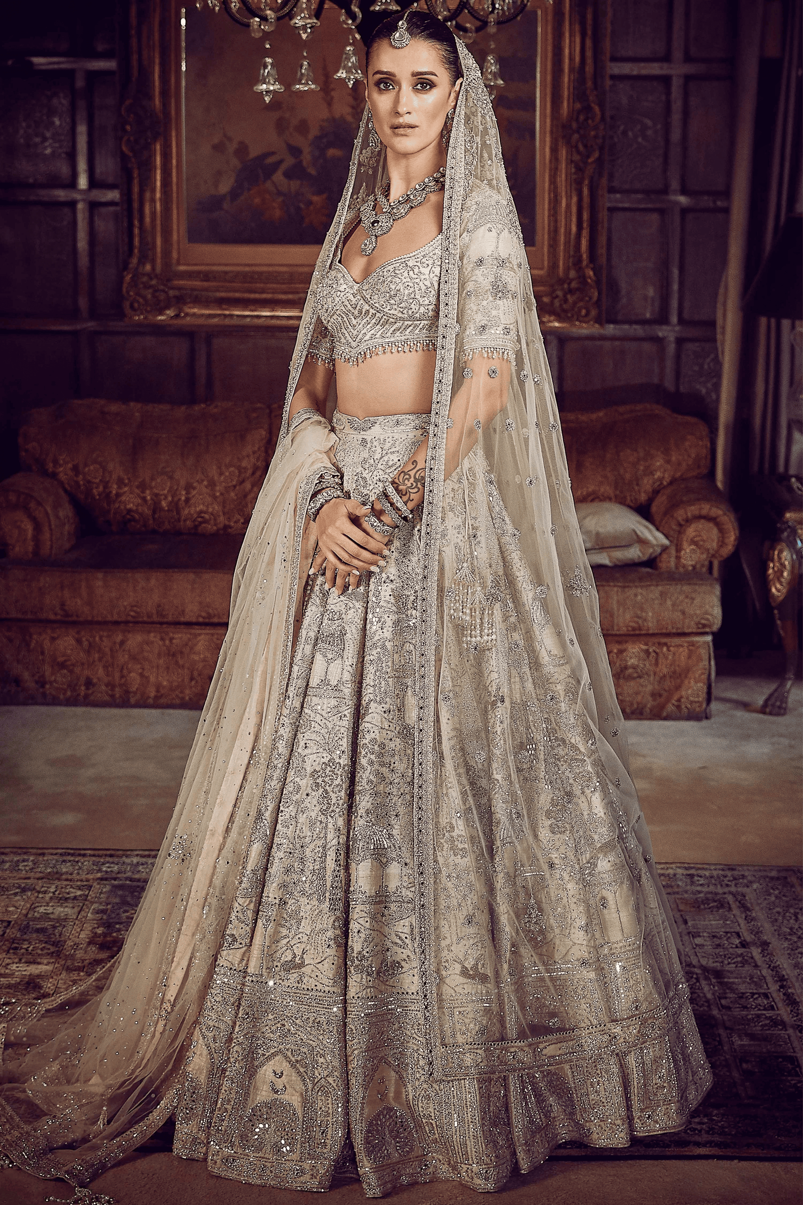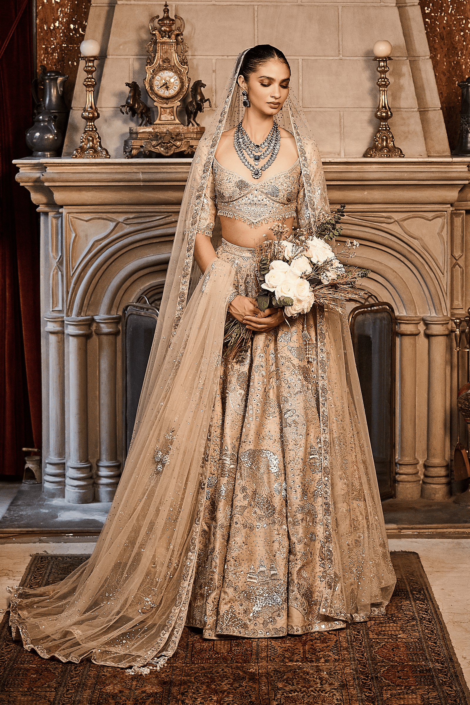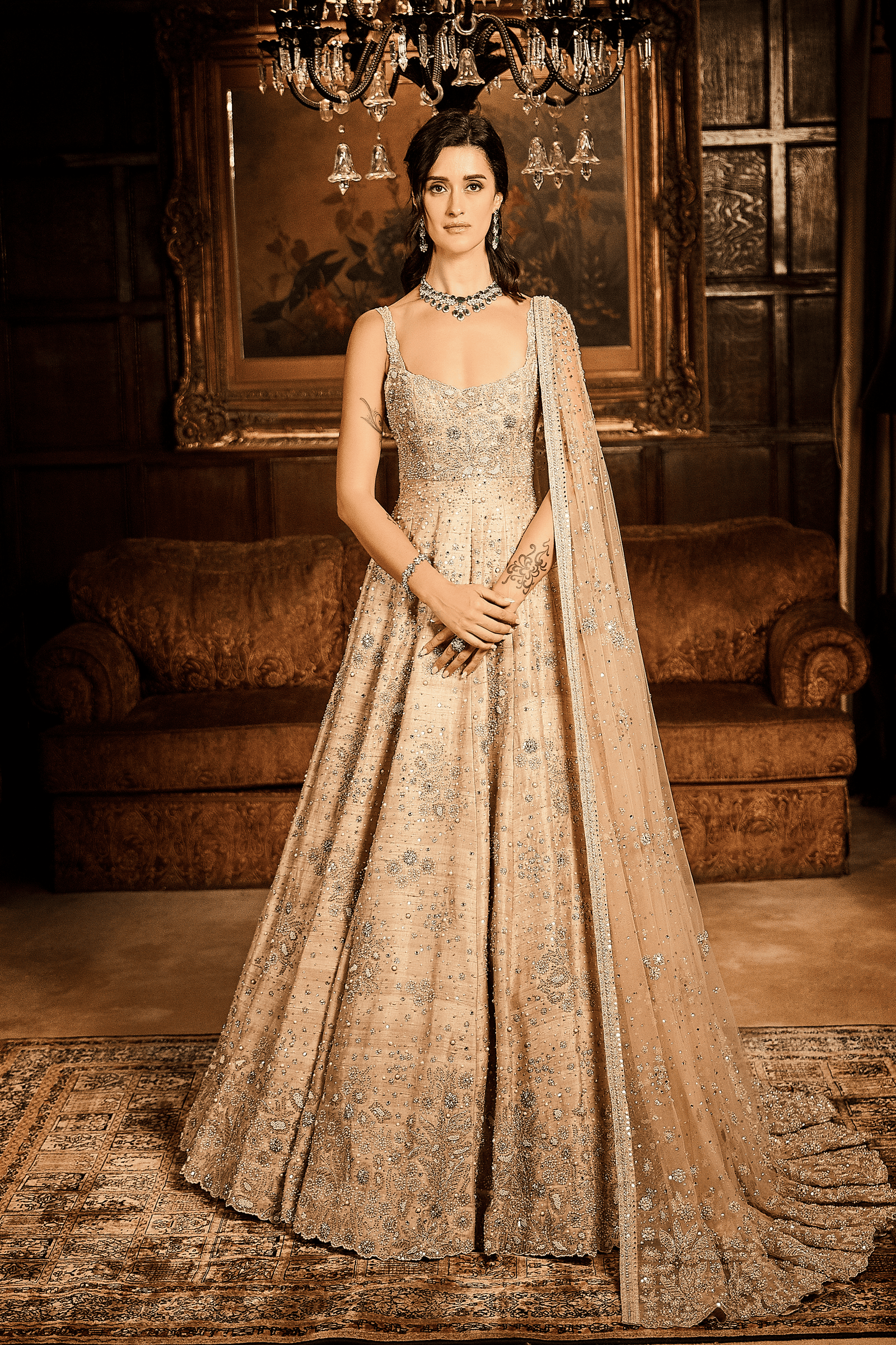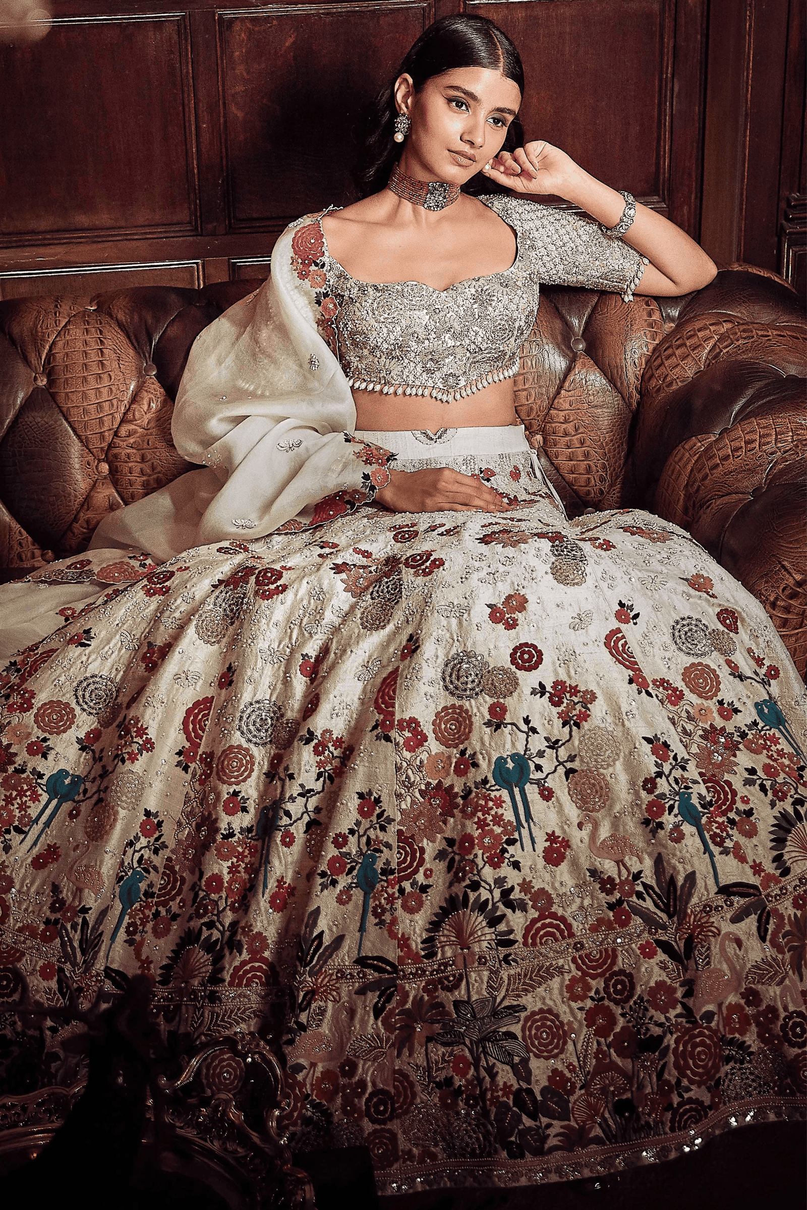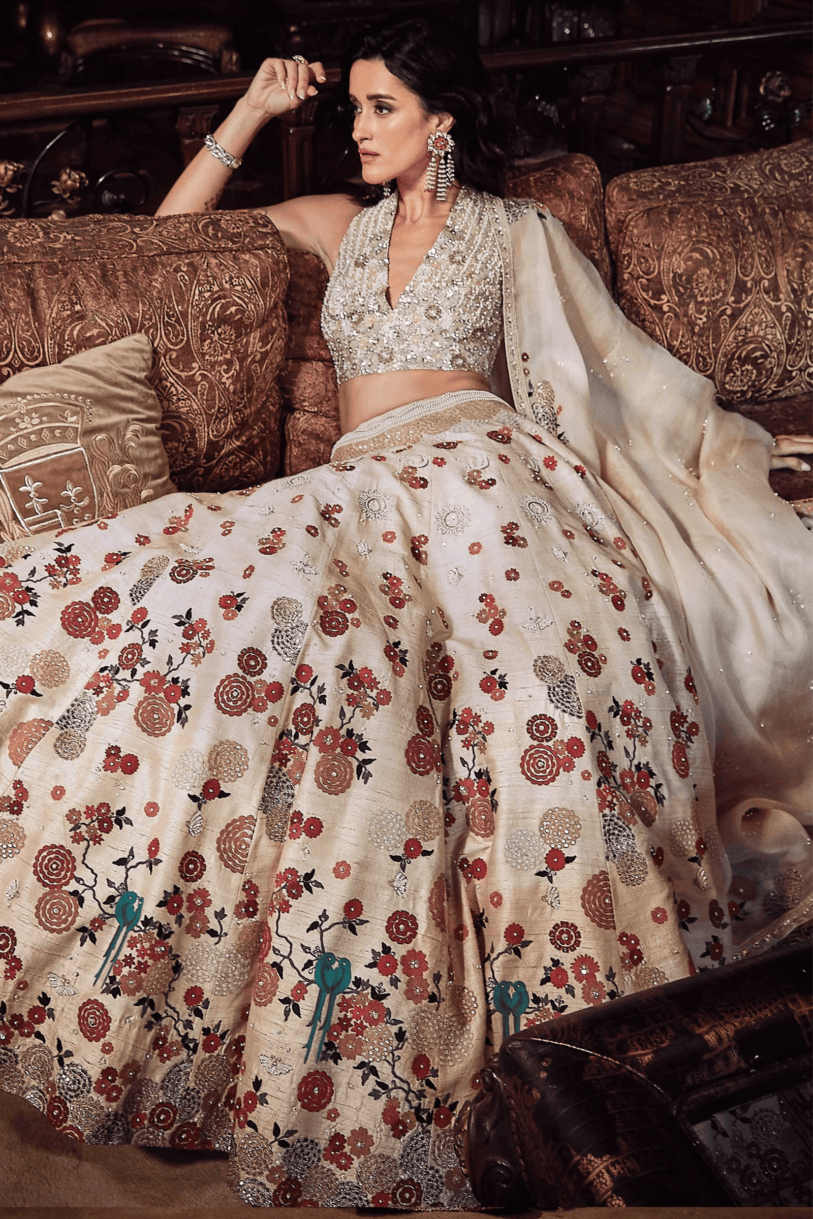 • Red benarasi silk jaal kurta paired with matching palazzo and organza dupatta