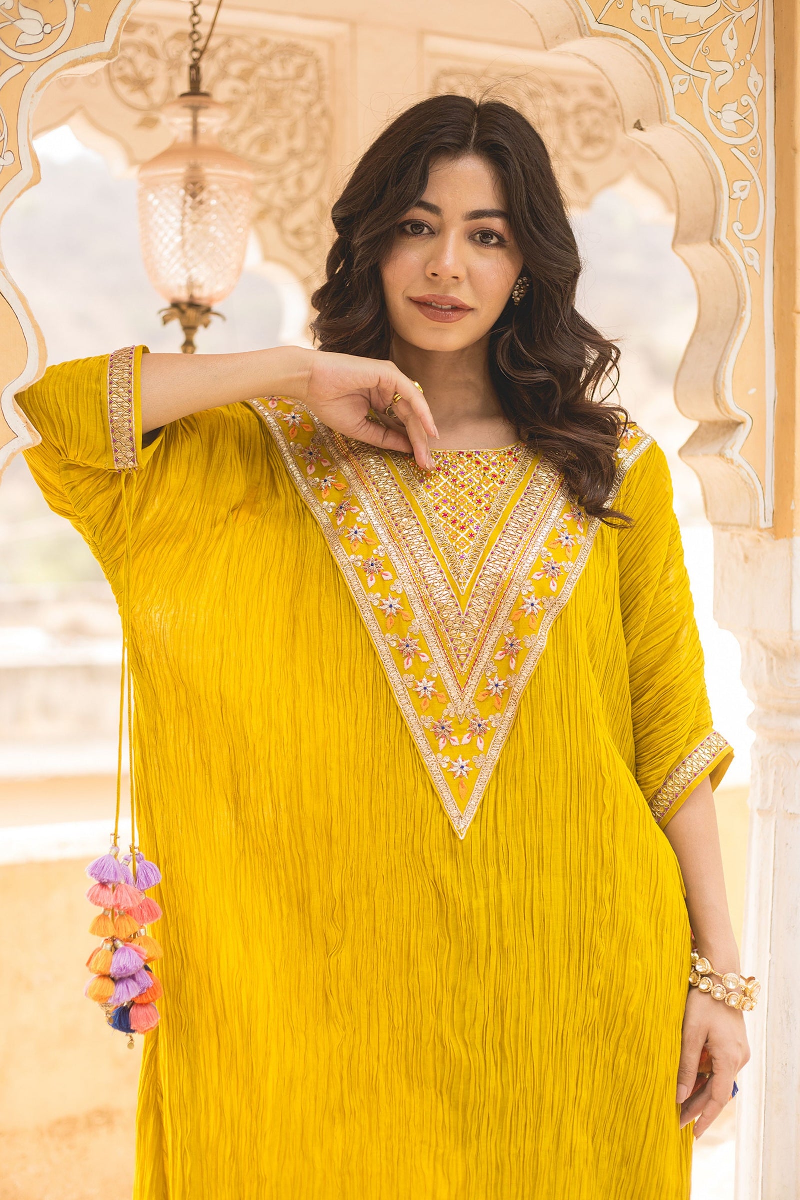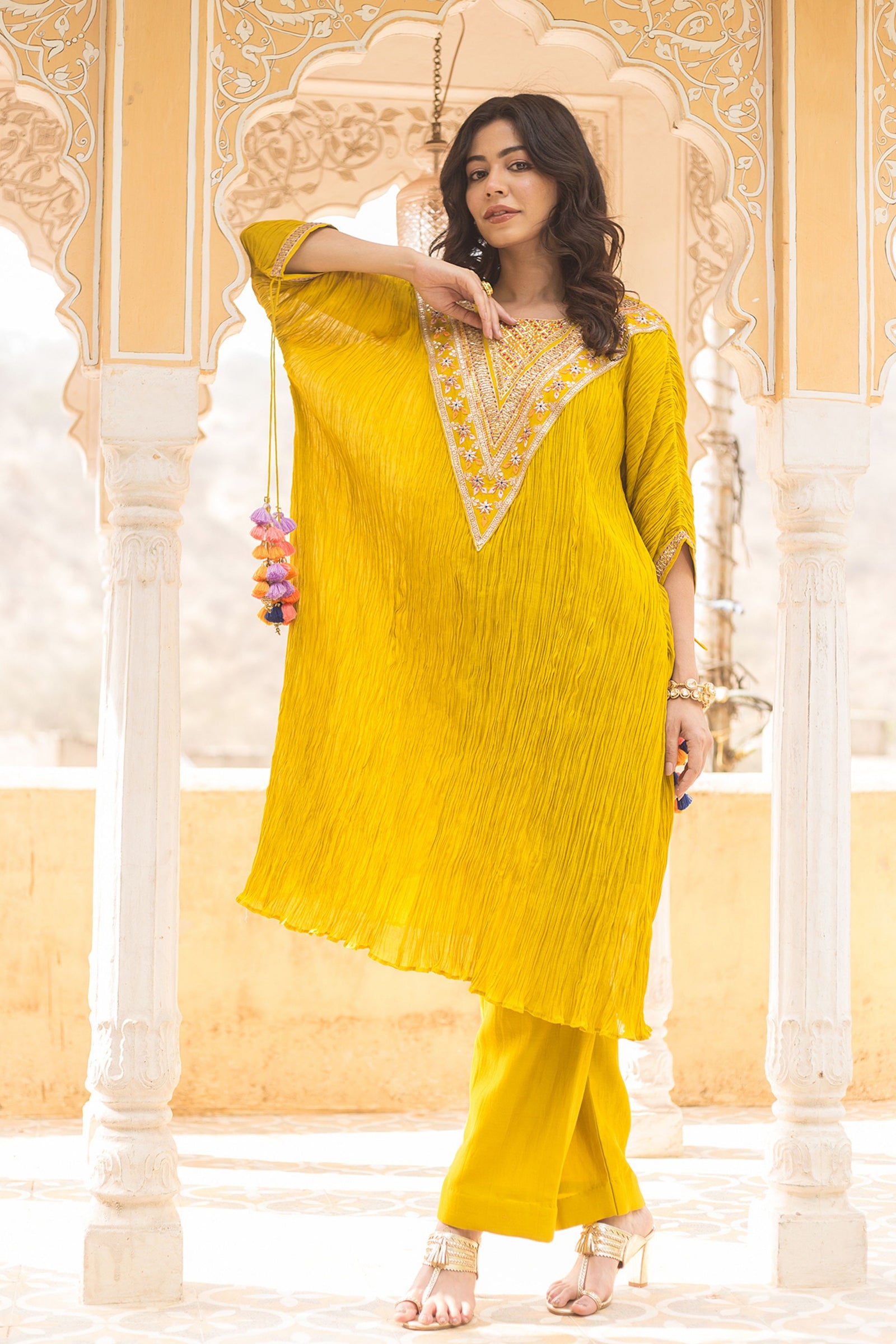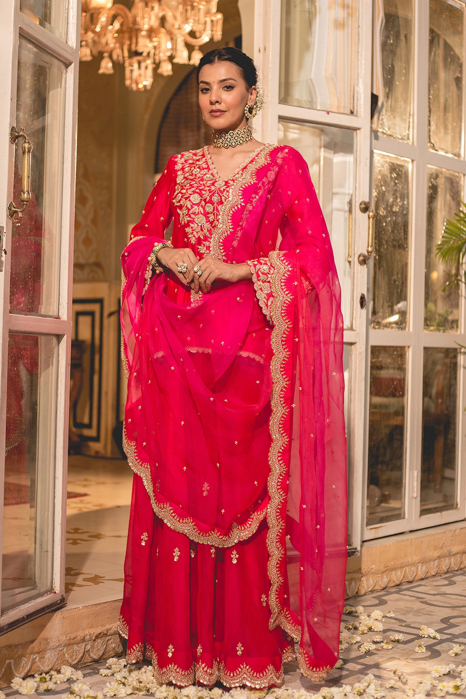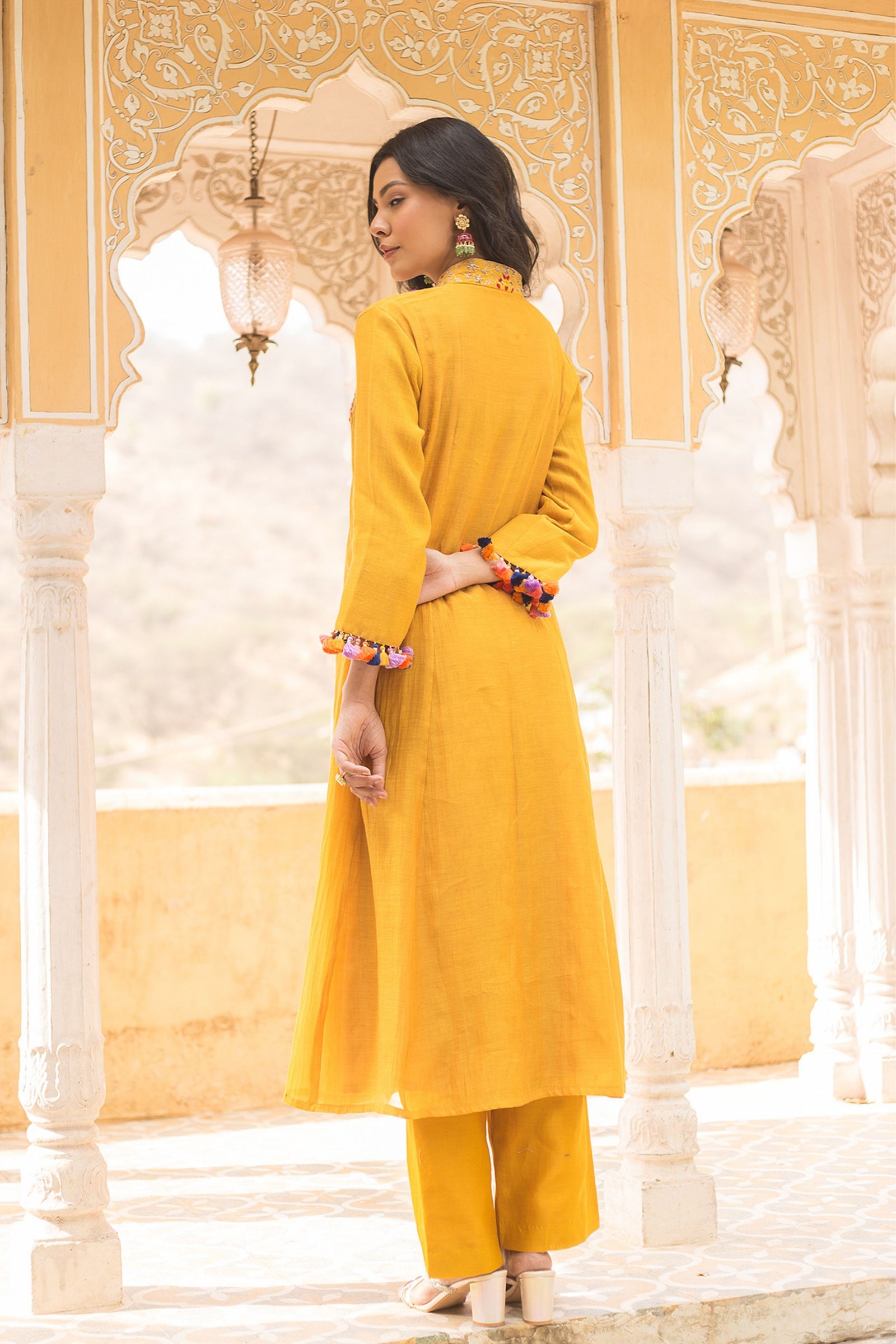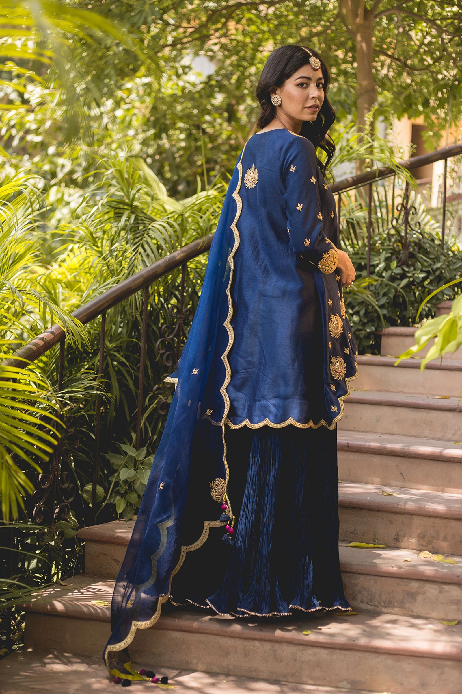 • Featuring spun silk kurta paired with matching pant and dupatta handcrafted with marori work.