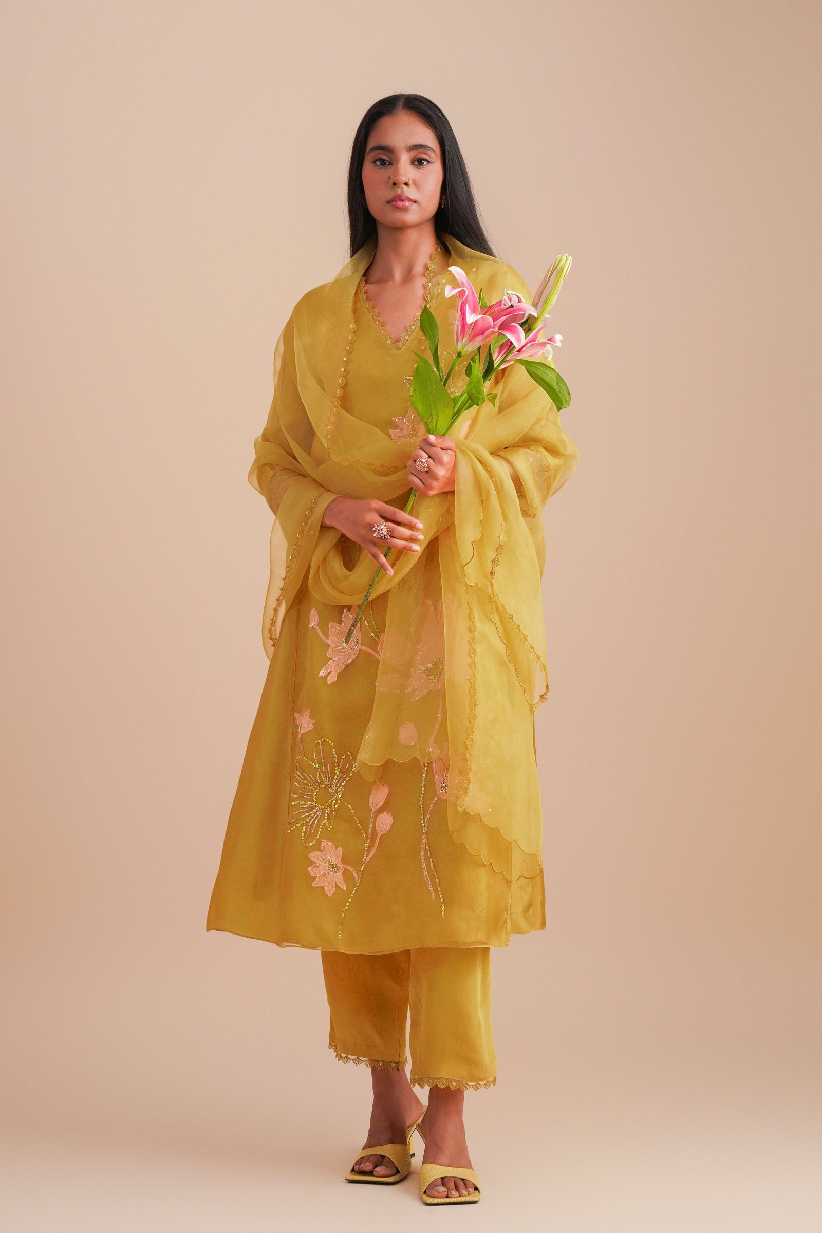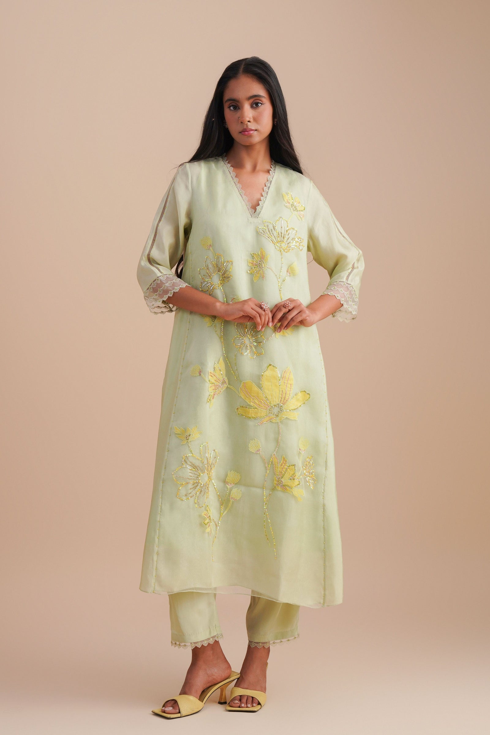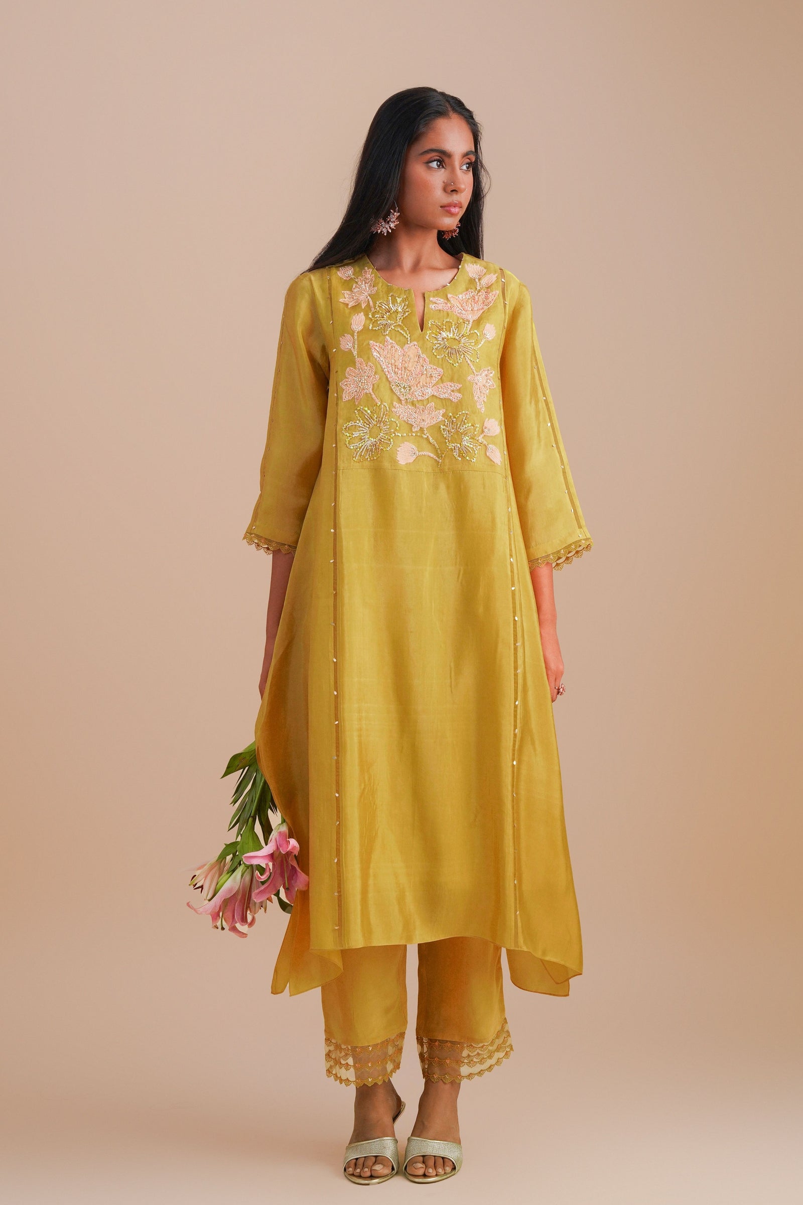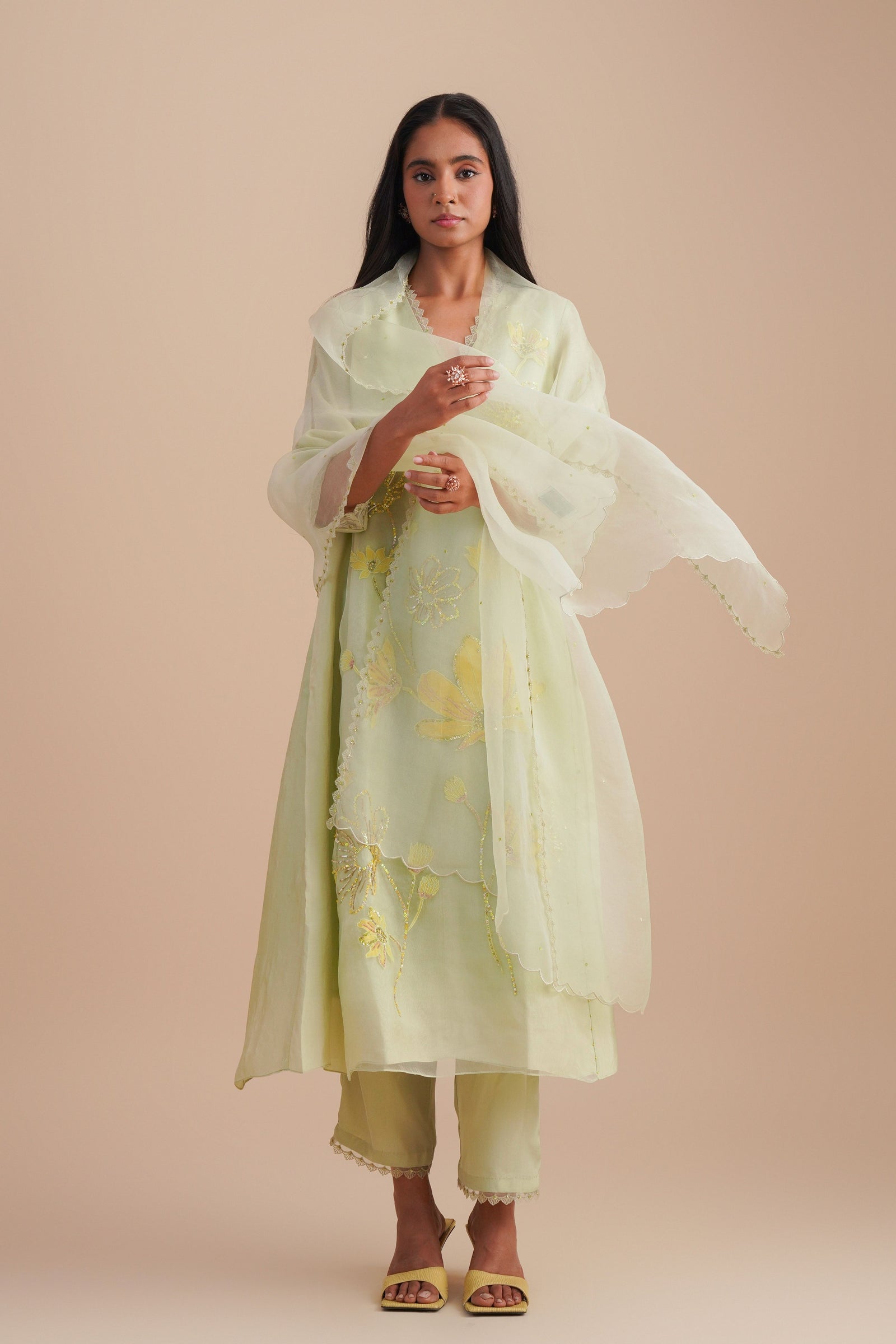 • Fabric: Kurta-viscose Silk, Pants -satin, Slip-cotton, Front Embroidery-organza