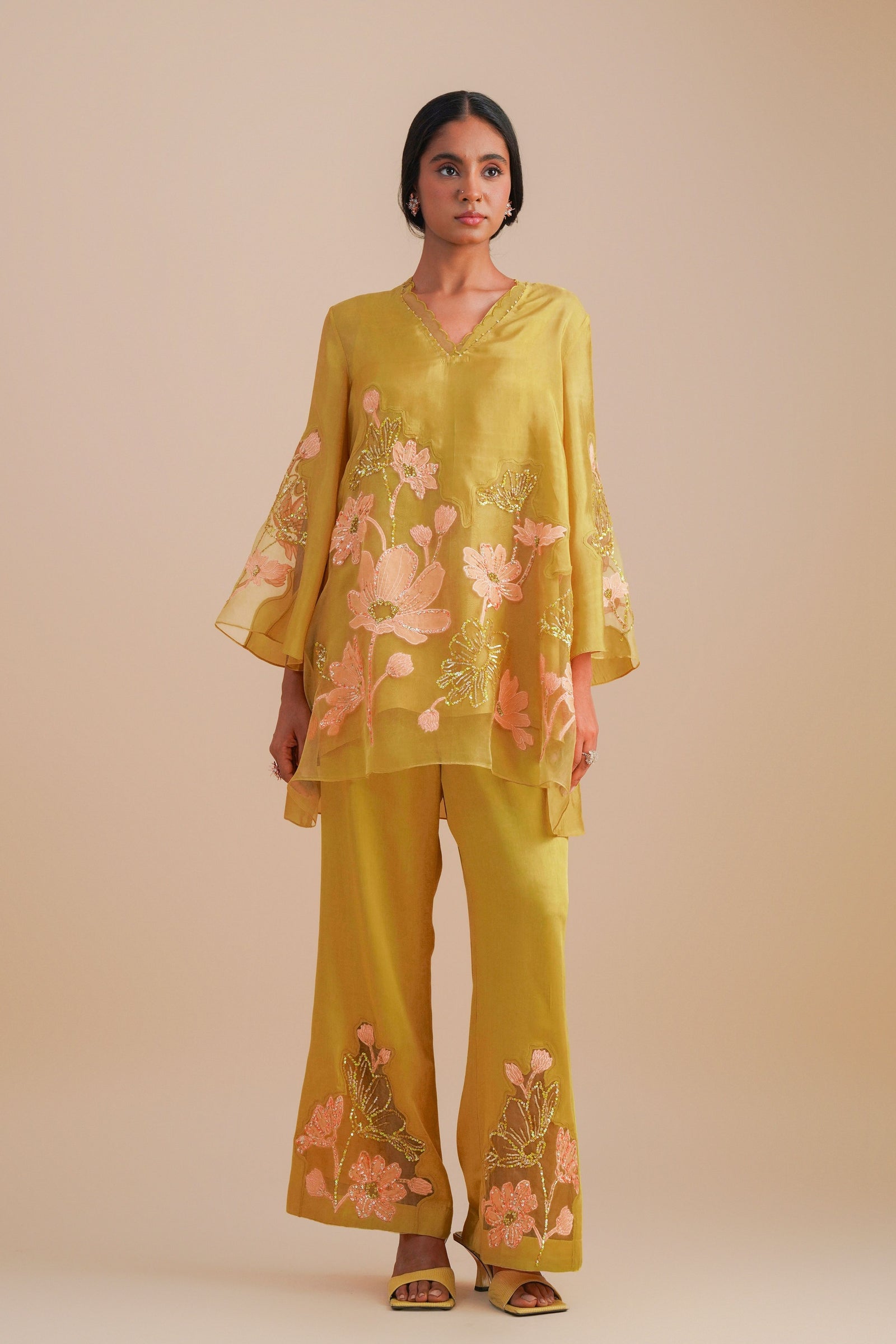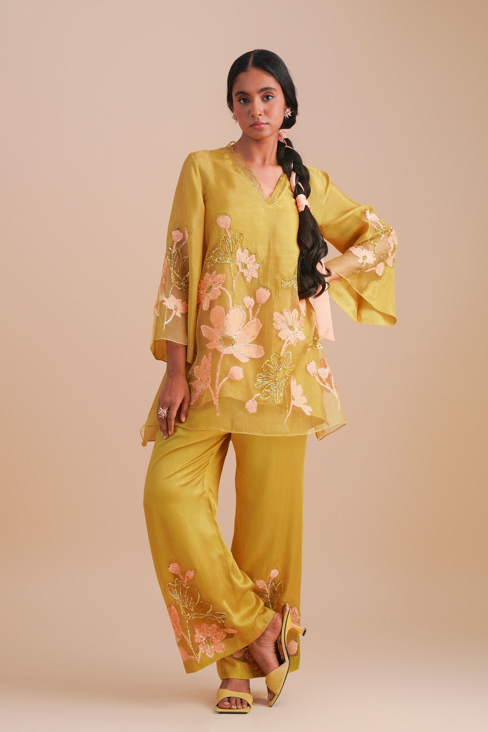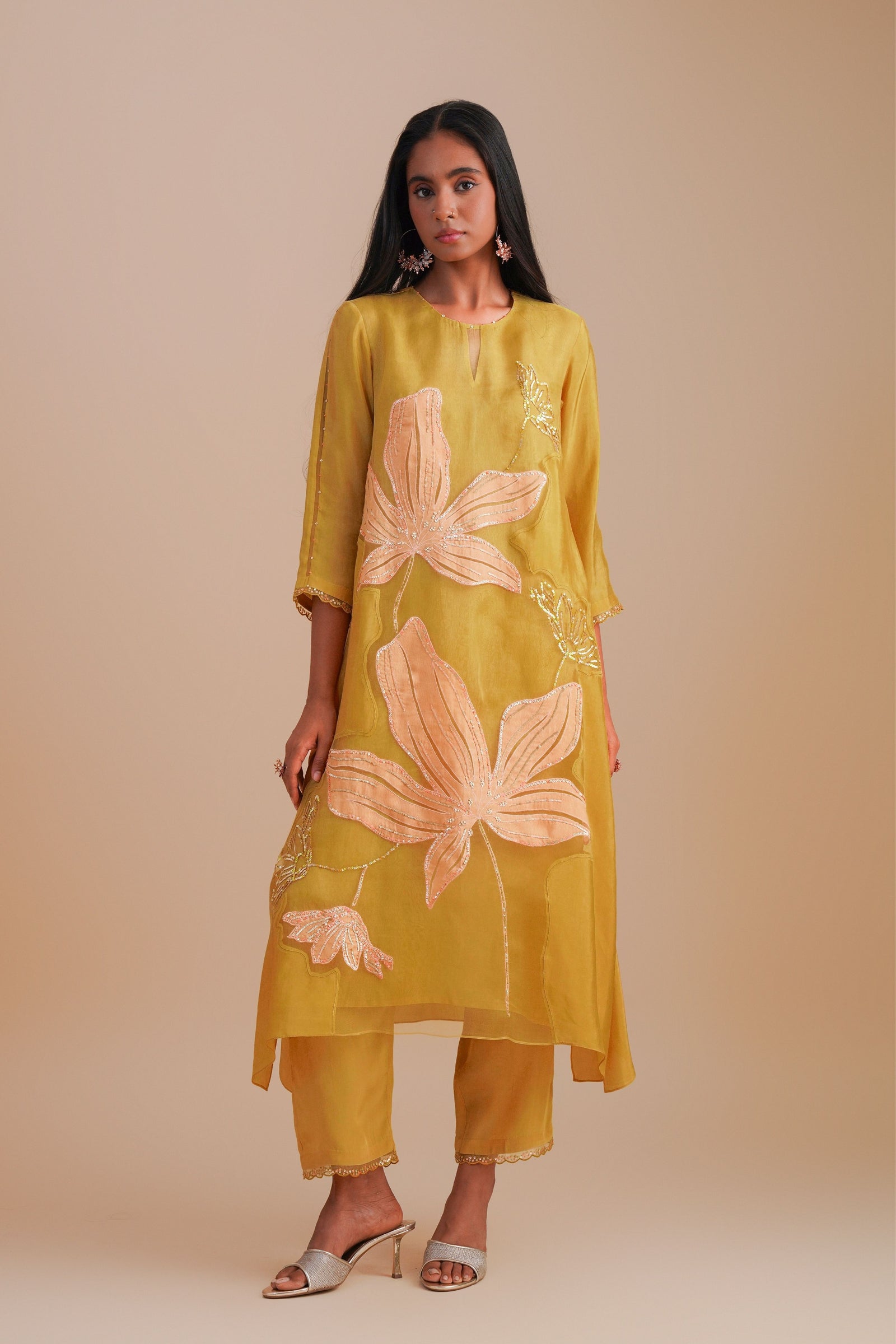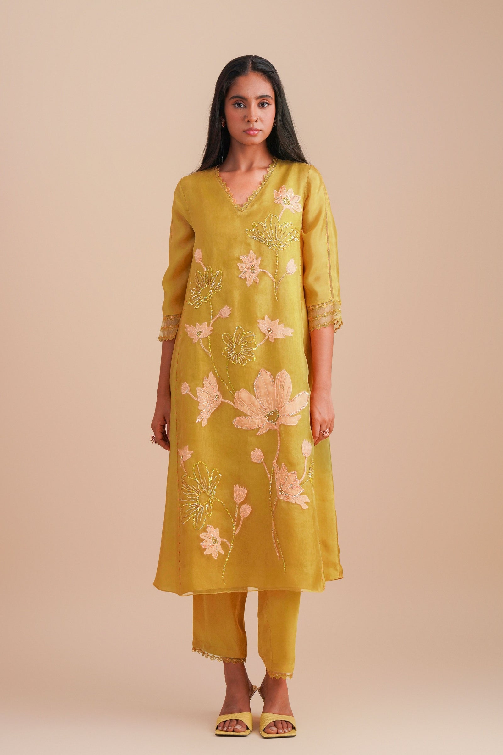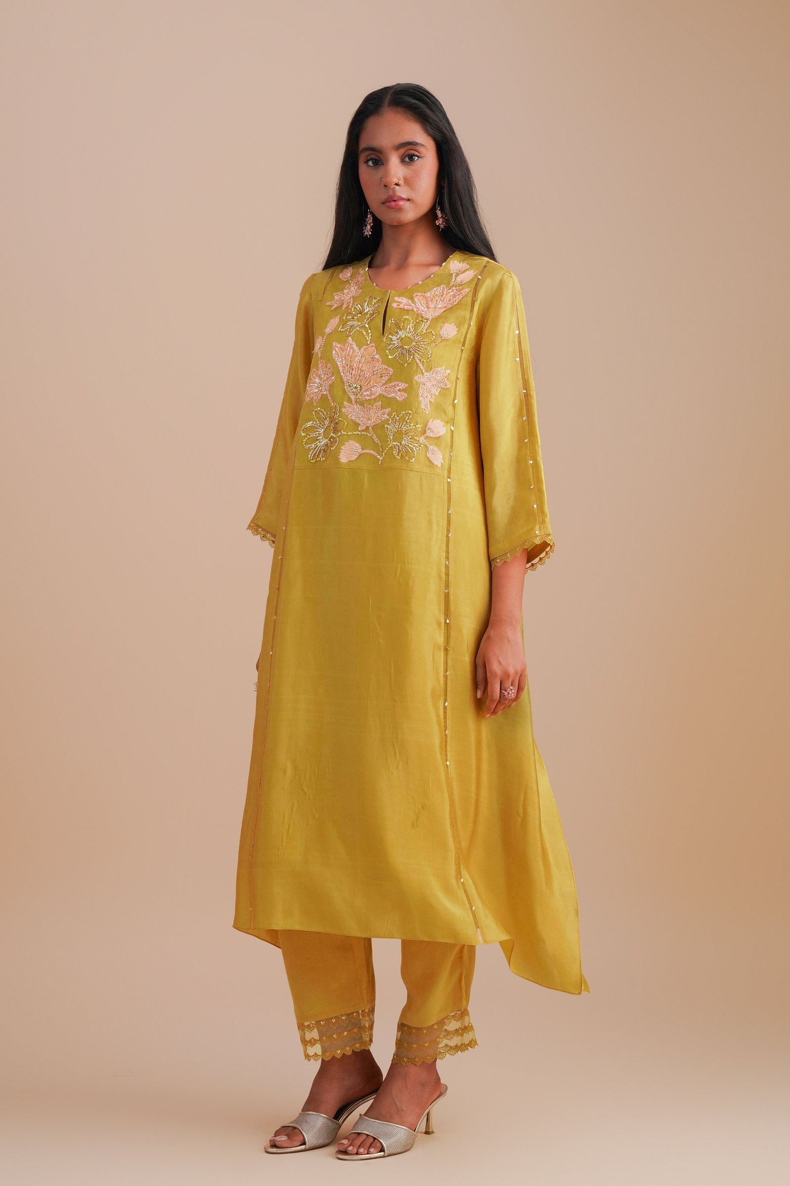 • Fabric: Kurta-viscose Silk, Pants -satin, Slip-cotton, Front Embroidery-organza