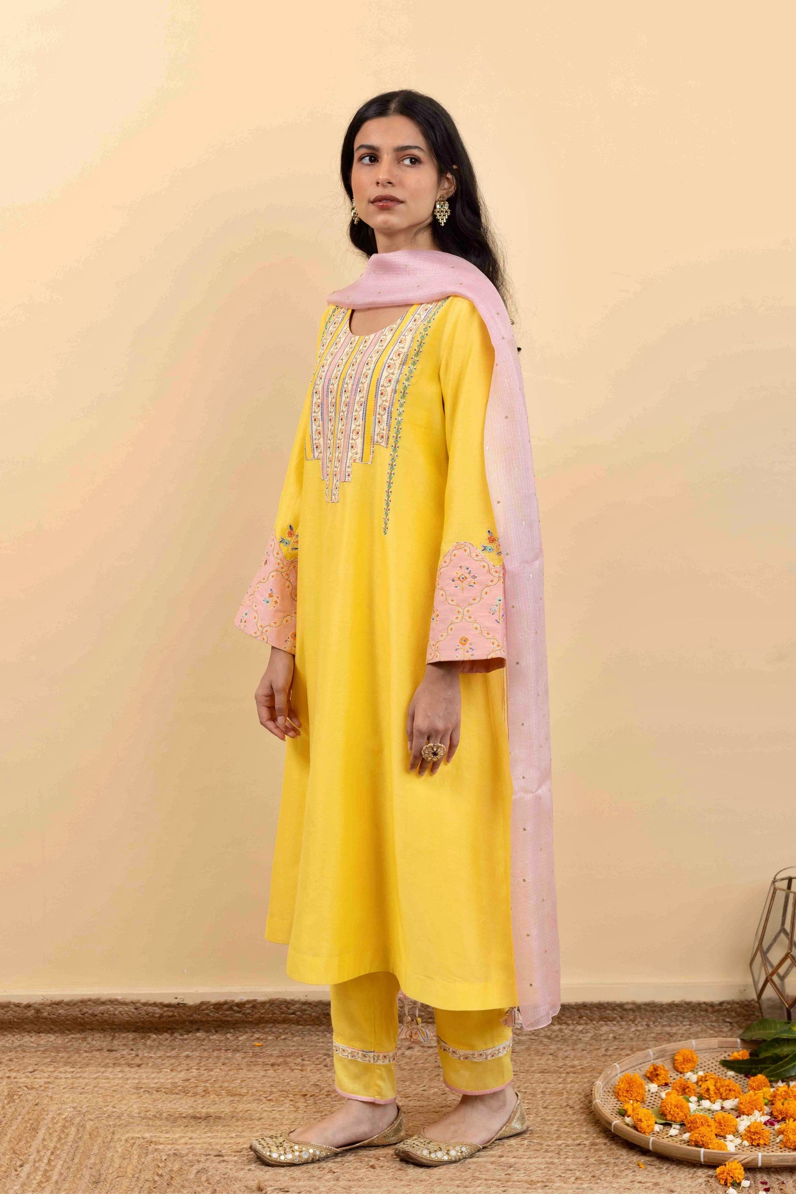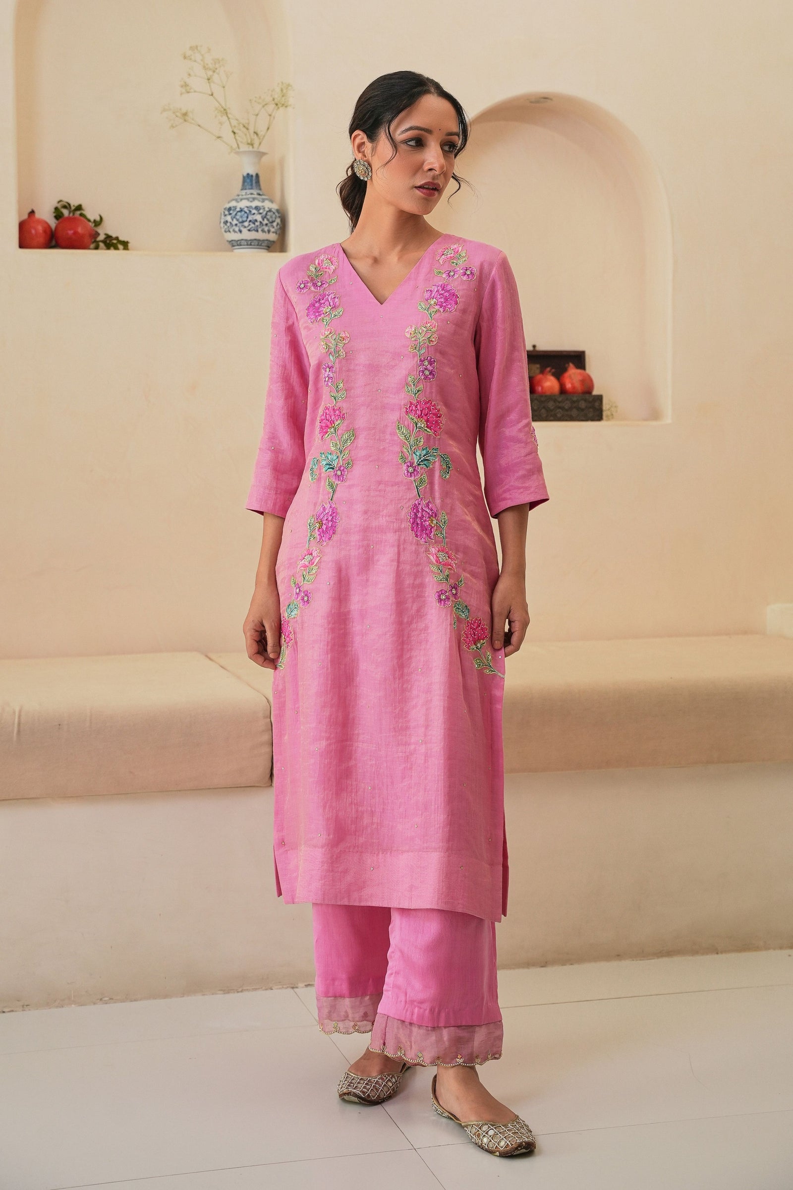 Care: Dry Clean Only. As garments are handmade and handwoven, natural variations in colours and weaves are a characteristic of the textile, and may be found in the finished garments as well.