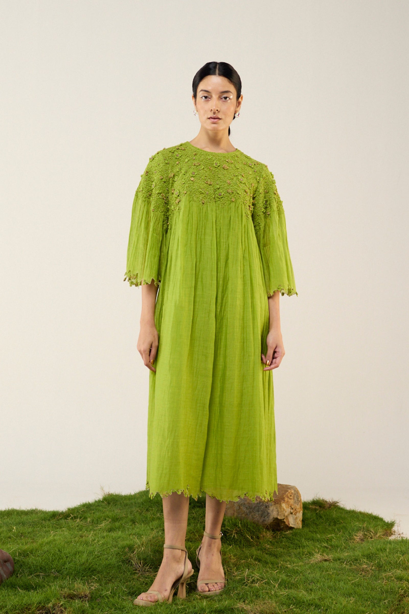 Care: Dry Clean Only. As garments are handmade and handwoven, natural variations in colours and weaves are a characteristic of the textile, and may be found in the finished garments as well.