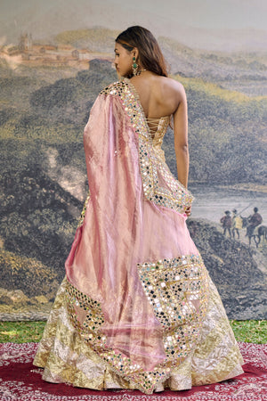 • Fabric: Mirror Long Corset, Half Chevron Tissue Lehenga