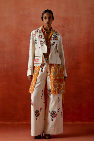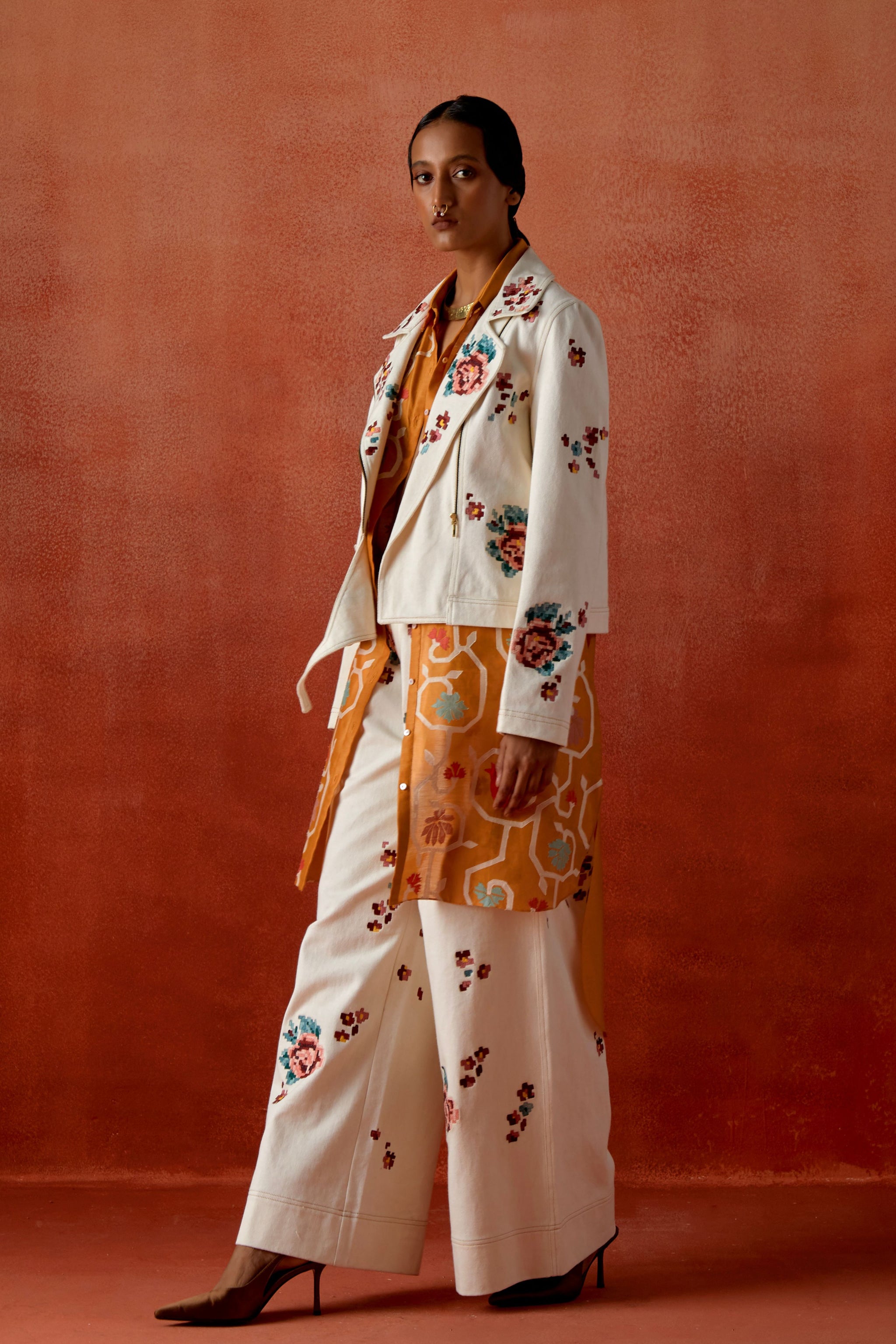 • Embroidered denim biker jacket with embroidered denim pants and inner embroidered shirt