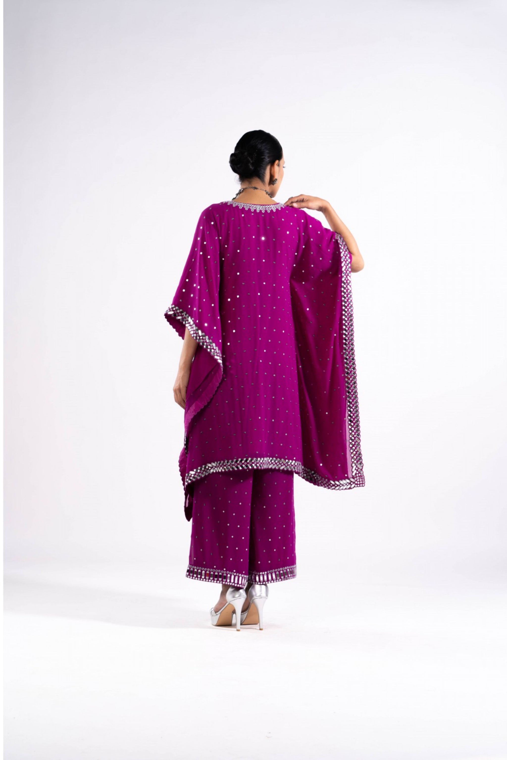 • Real hand cut mirror and chheeta work kaftan paired with palazzo pants.