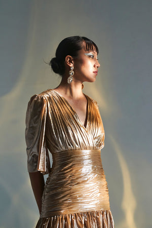 • All that illuminates is gold in this mesmerising dress that flatters your silhouette and makes for the ideal look for an evening out.