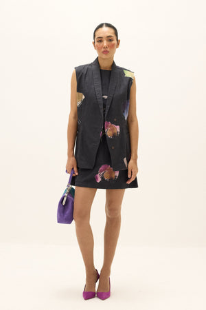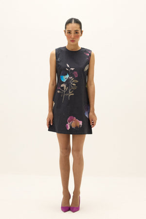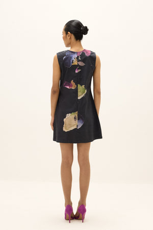 • A sleeveless a-line mini dress crafted in oxford cotton, featuring abstract floral prints in soft bursts of lilac, ochre, and turquoise. Effortlessly structured yet feminine, it transitions seamlessly from daywear to evening edits with minimal styling. Garment length- 33".