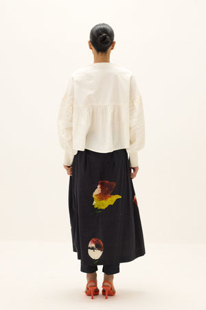 • An artistic reinterpretation of structure and flow - the noira pant in cotton poplin features bold abstract floral prints in rich tones of crimson, green, and ivory. Designed with an asymmetric overlay and soft pleats, it creates the illusion of movement while maintaining a tailored silhouette. A versatile statement piece that transitions seamlessly across seasons.