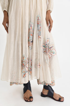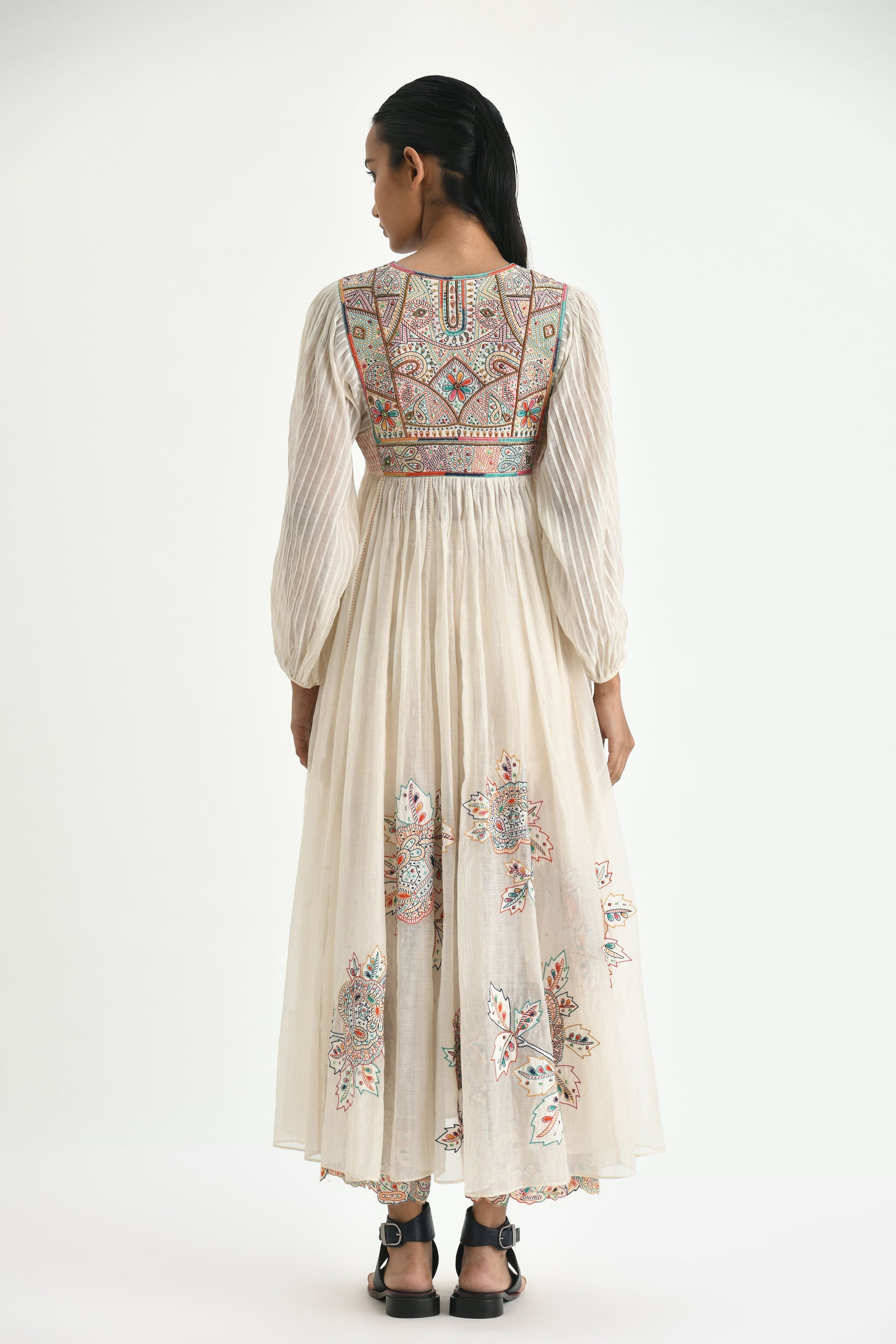 • Round slit neck, yoke kurta with ethereal hand embroidery inspired by the traditional kedia. The fabric is textured with fine pleats and the hem is adorned with applique embroidered roses. Wear it as a dress or style it with our scalloped applique embroidered pants and make a statement.