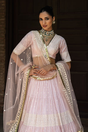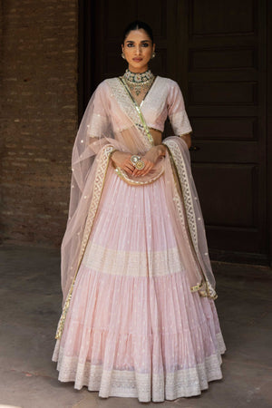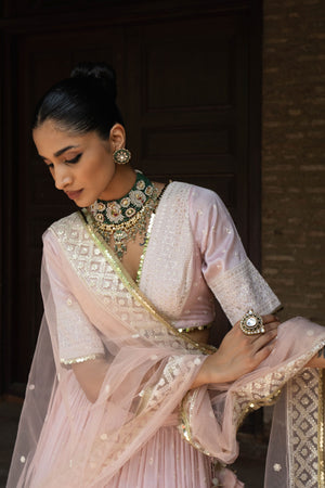 • Fabric: Blouse: Gold Sequin Embroidered, Skirt: Chanderi Silk, Dupatta: Tule