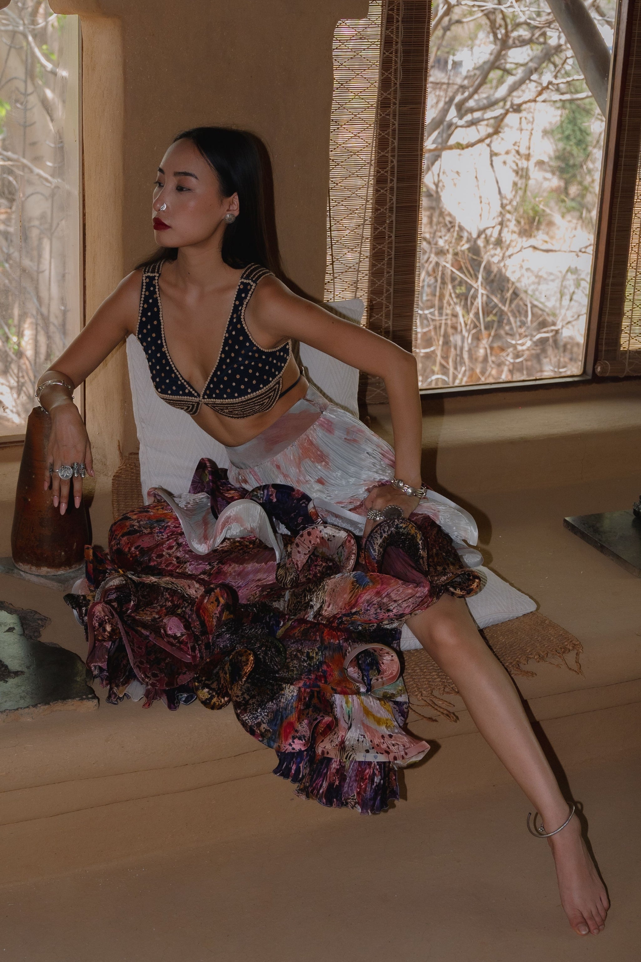 Care: Dry Clean Only. As garments are handmade and handwoven, natural variations in colours and weaves are a characteristic of the textile, and may be found in the finished garments as well.