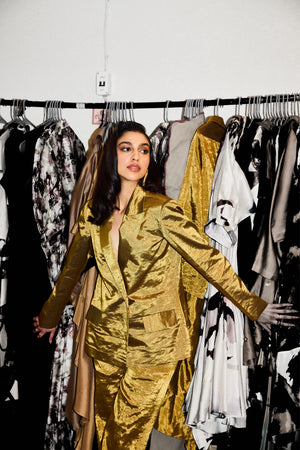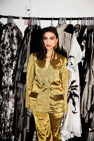 Care: Dry Clean Only. As garments are handmade and handwoven, natural variations in colours and weaves are a characteristic of the textile, and may be found in the finished garments as well.
