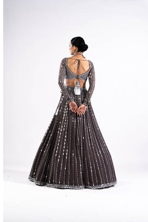 • Real hand cut mirror heavily embellished lehenga paired with a mirror work full sleeve blouse