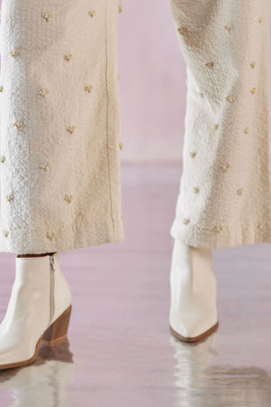 Care: Dry Clean Only. As garments are handmade and handwoven, natural variations in colours and weaves are a characteristic of the textile, and may be found in the finished garments as well.