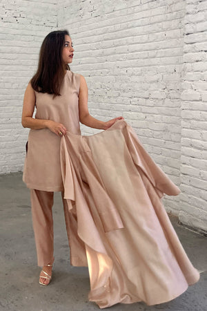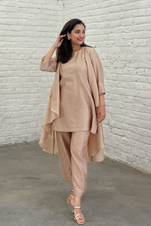 Care: Dry Clean Only. As garments are handmade and handwoven, natural variations in colours and weaves are a characteristic of the textile, and may be found in the finished garments as well.