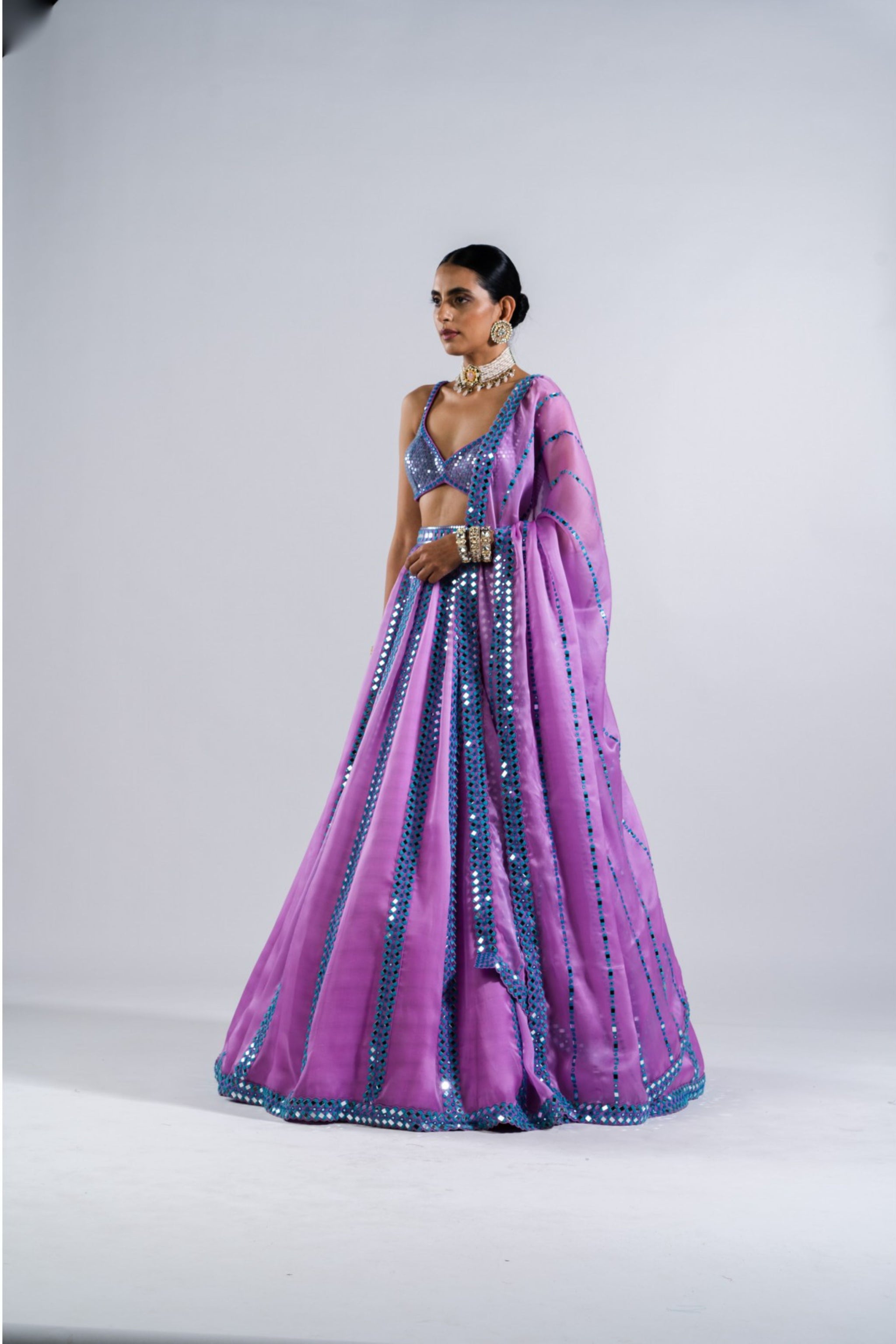 Mauve Mirror Seam Lehenga With Metallic Blouse