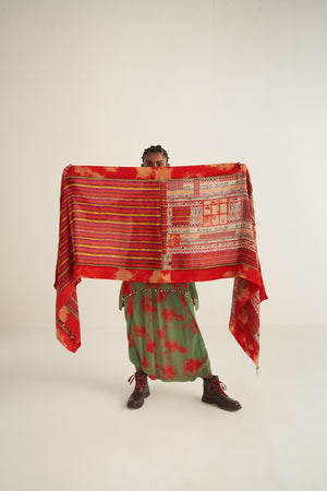 • Relaxed fit mitra short kurti with embroidered yoke and tribal tassel detailing on front neck paired with drape trouser and printed dupatta.