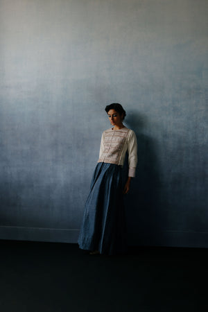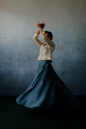 Care: Dry Clean Only. As garments are handmade and handwoven, natural variations in colours and weaves are a characteristic of the textile, and may be found in the finished garments as well.