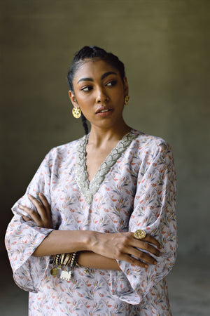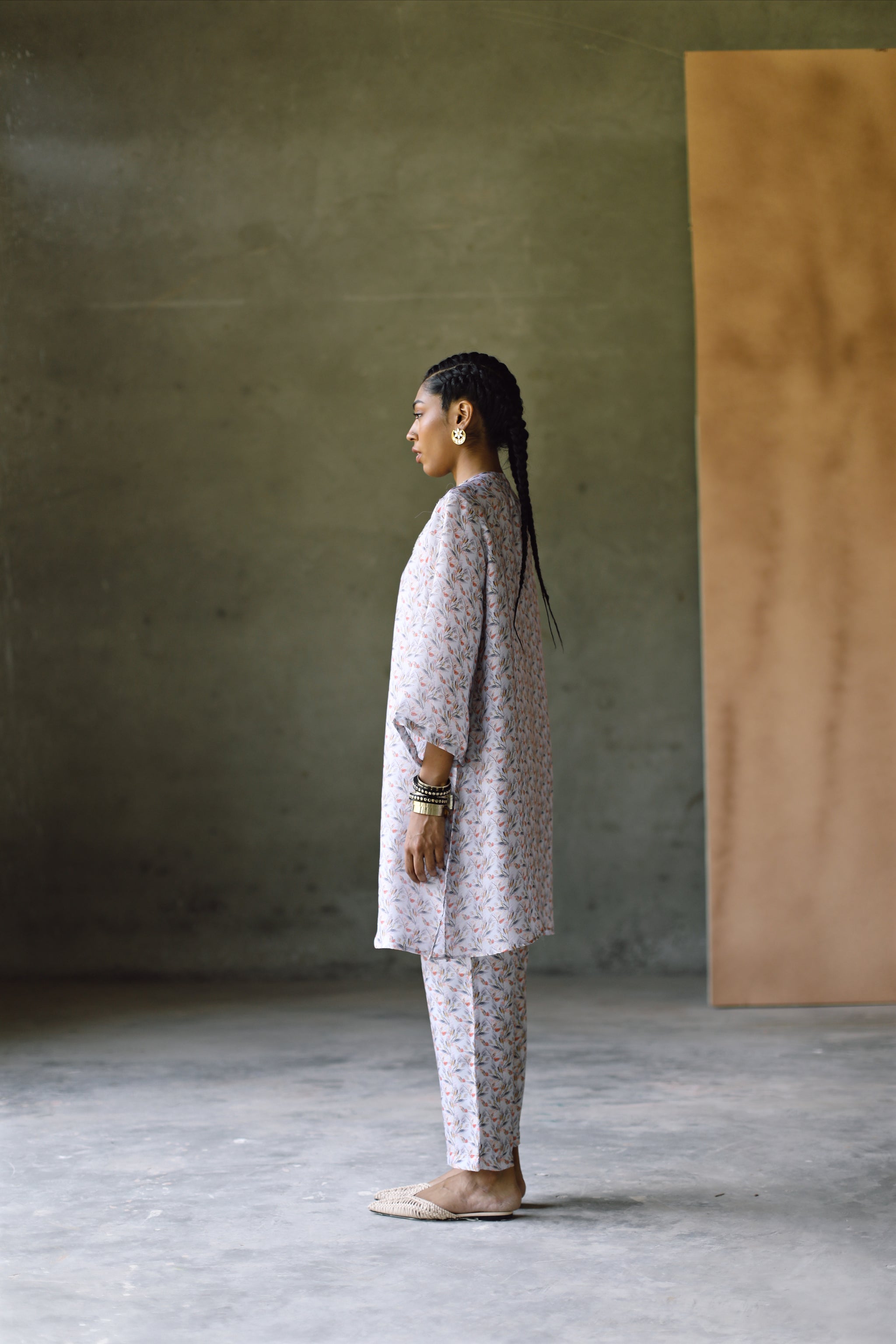 Oxford V Emb Kurta & Pant Co-Ord Set