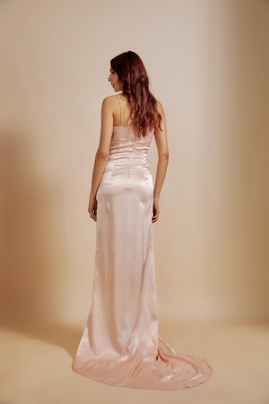 • Featuring Peach Embroidered Drape Corset Dress Embroidery - Hand Embroidery