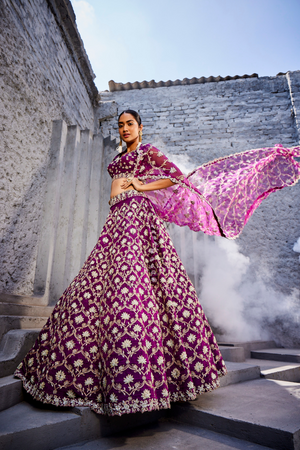 Purple Lotus Ogee Motif Lehenga