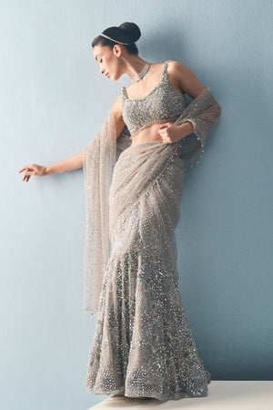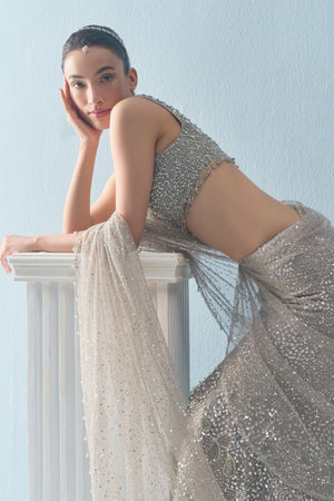 Silver Grey Drape Lehenga Set