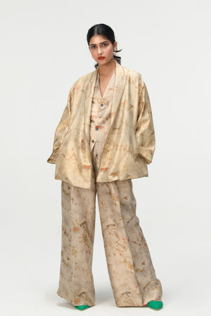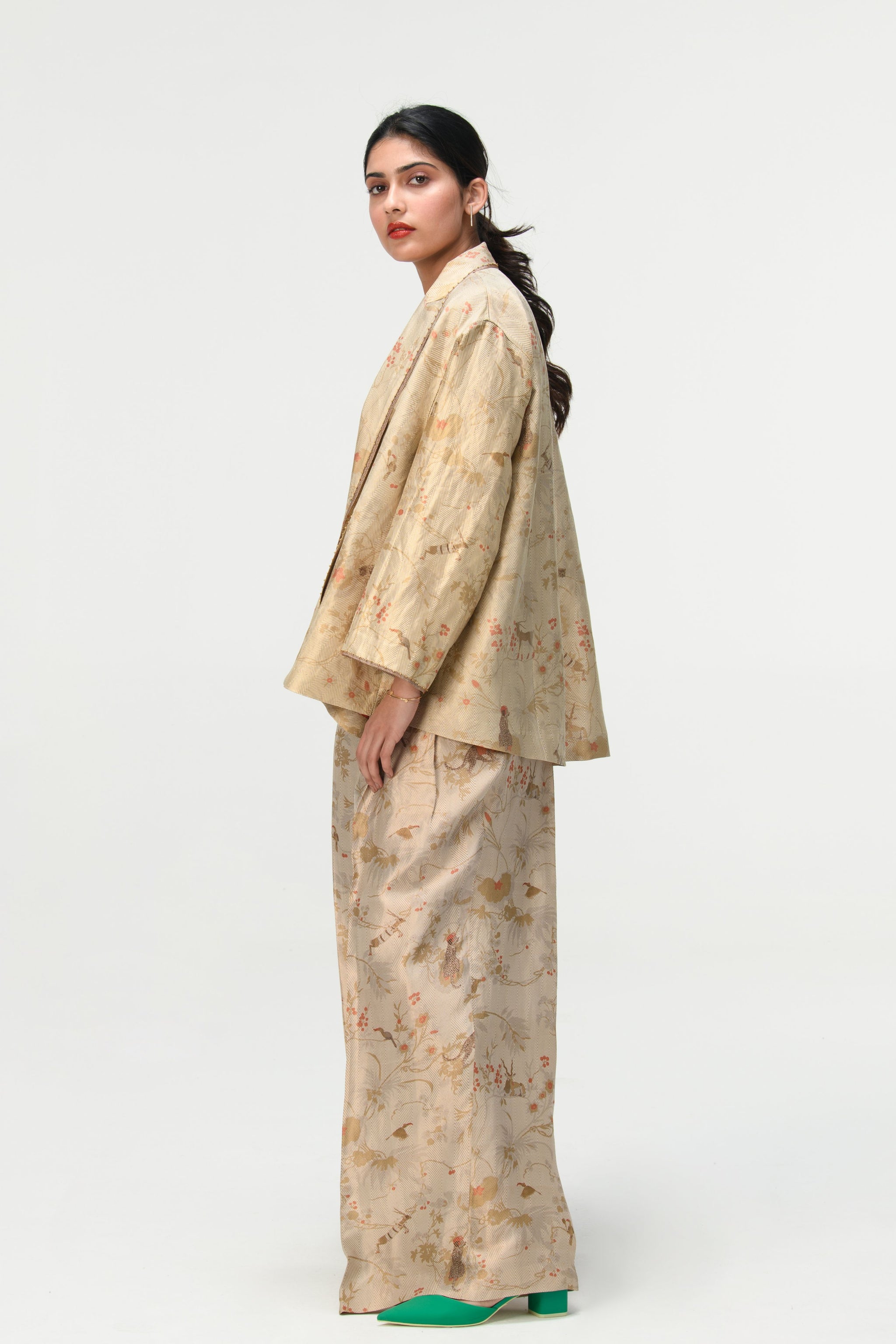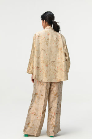 Care: Dry Clean Only. As garments are handmade and handwoven, natural variations in colours and weaves are a characteristic of the textile, and may be found in the finished garments as well.
