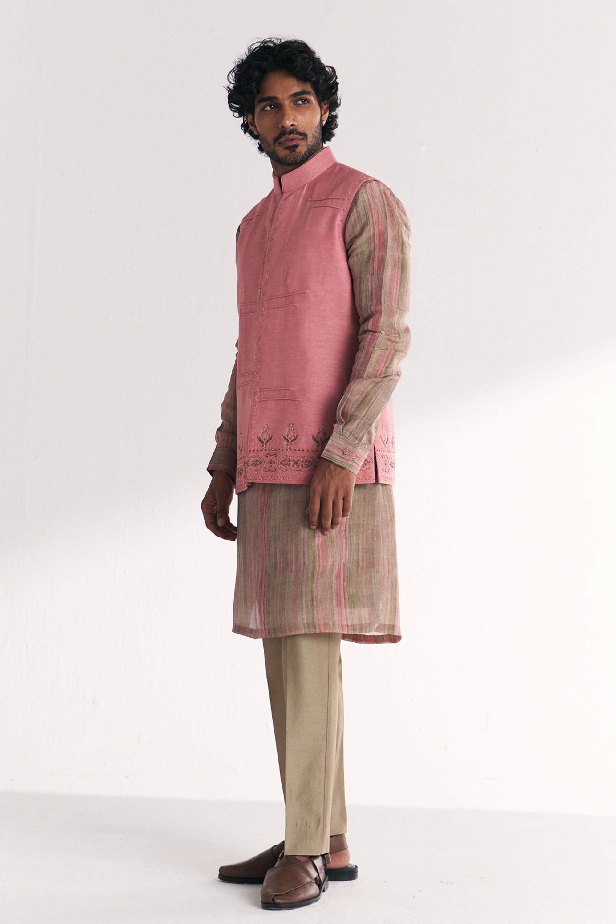 Care: Dry Clean Only. As garments are handmade and handwoven, natural variations in colours and weaves are a characteristic of the textile, and may be found in the finished garments as well.