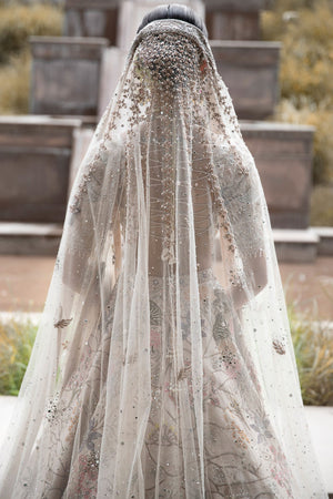 • Components: Lehenga, Dupatta, Blouse, Veil (4)