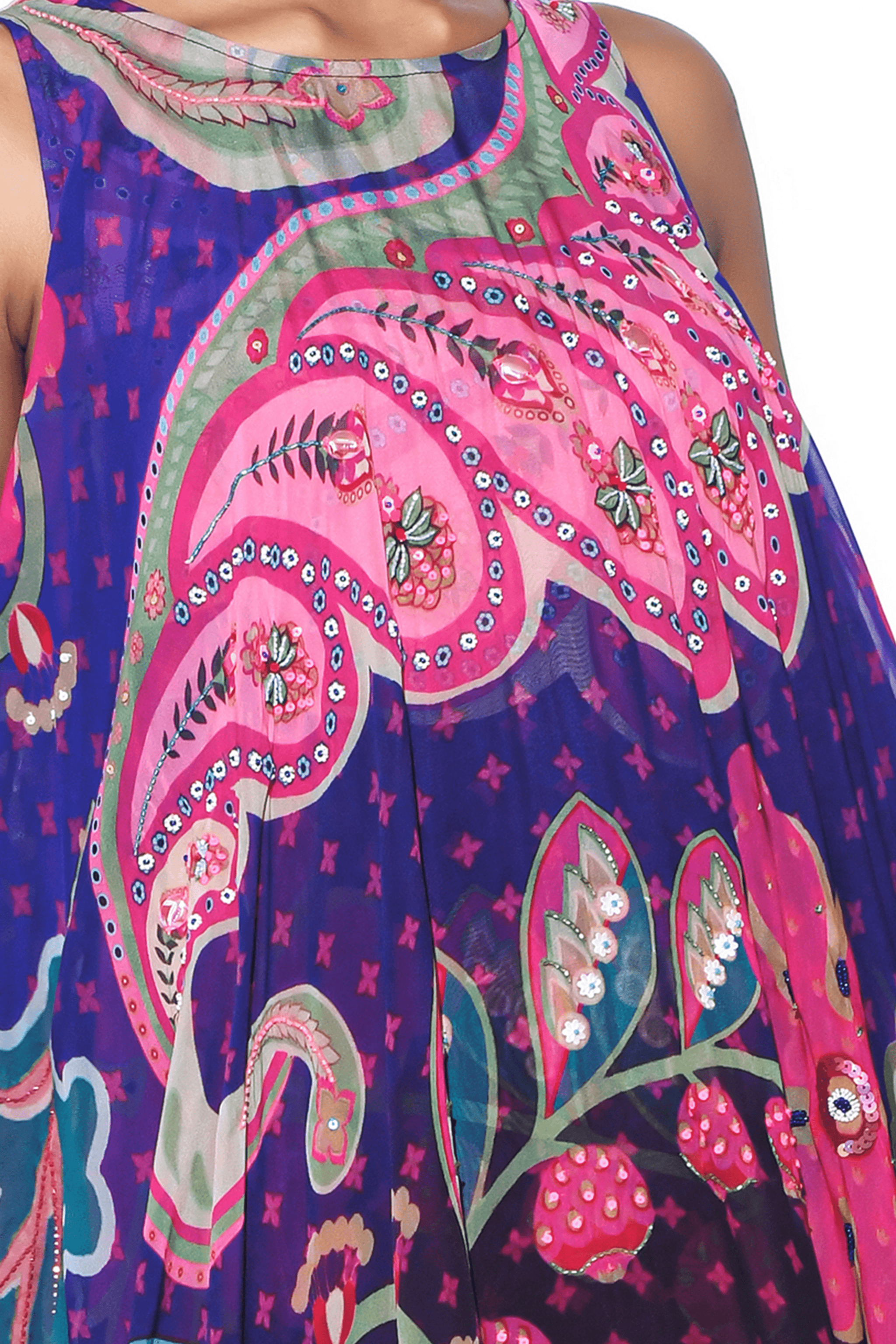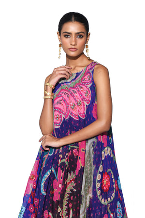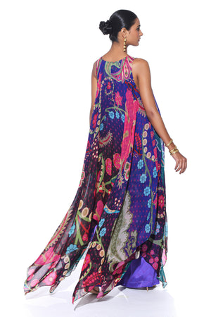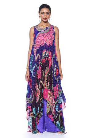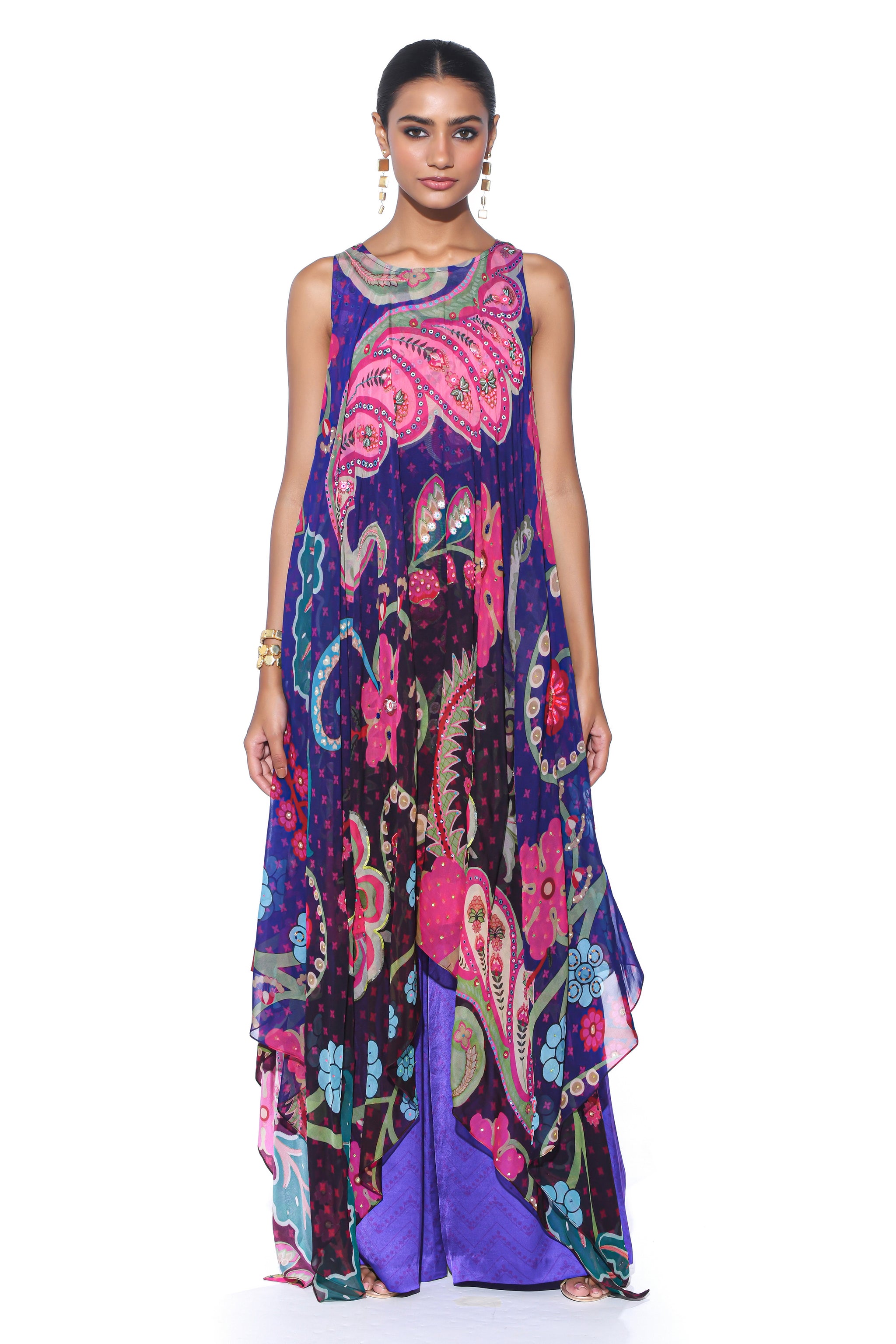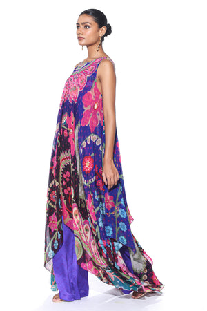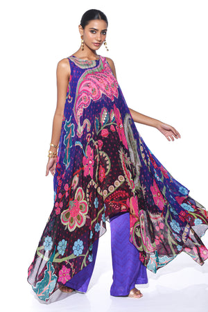 • Fantacy violet highlow tunic with hand embroidery, violet chevron printed pants