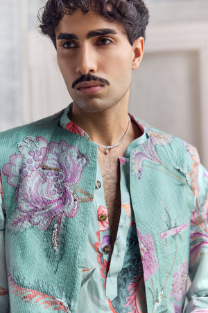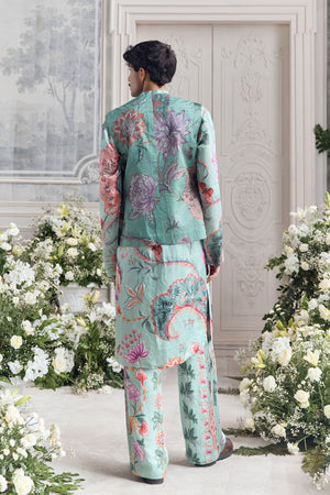• Fabric: Kurta-linen Satin, Trouser-linen Satin, Bundi- Satin Organza