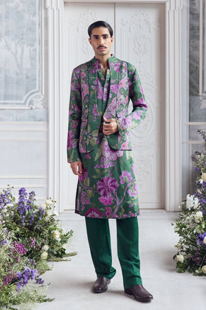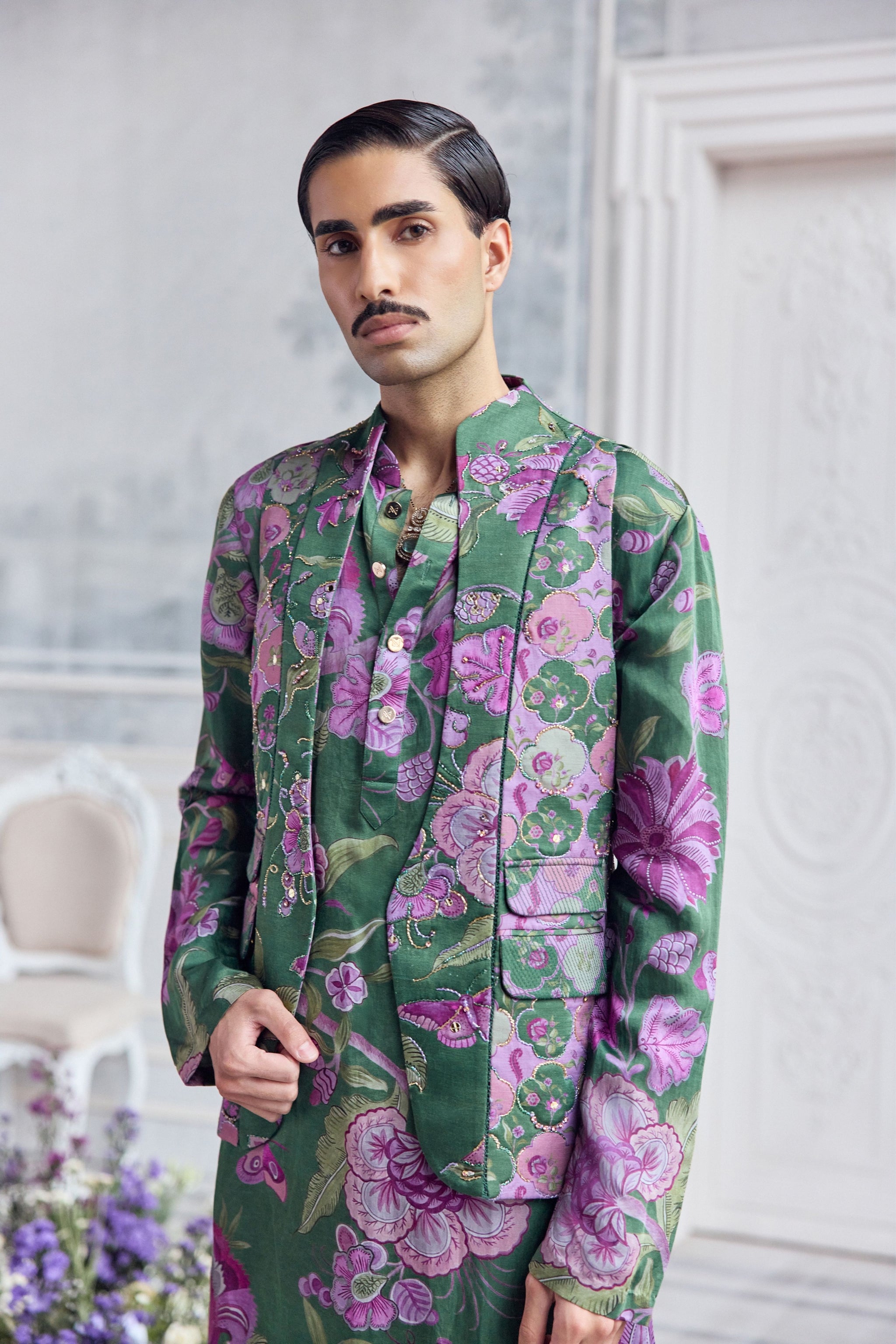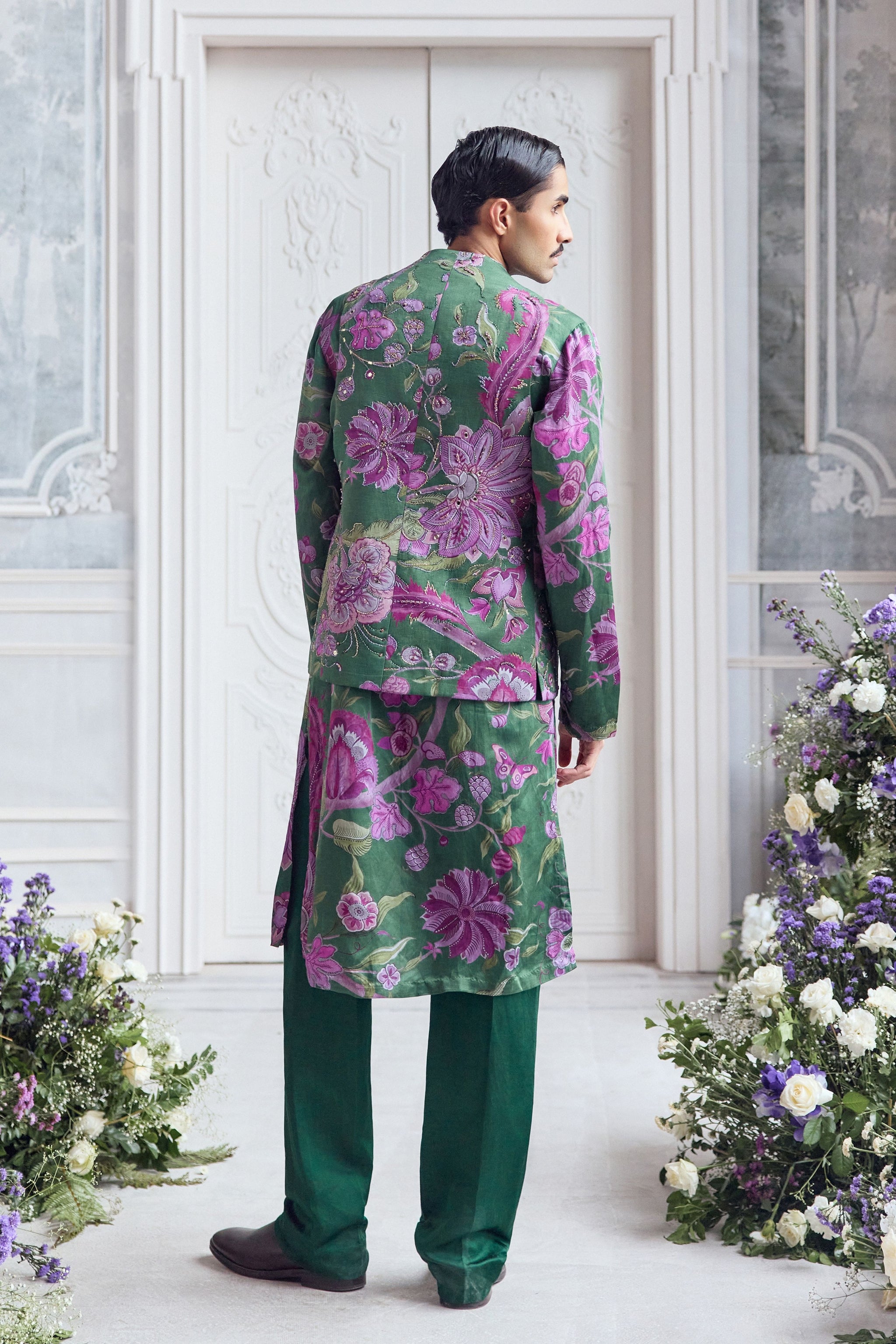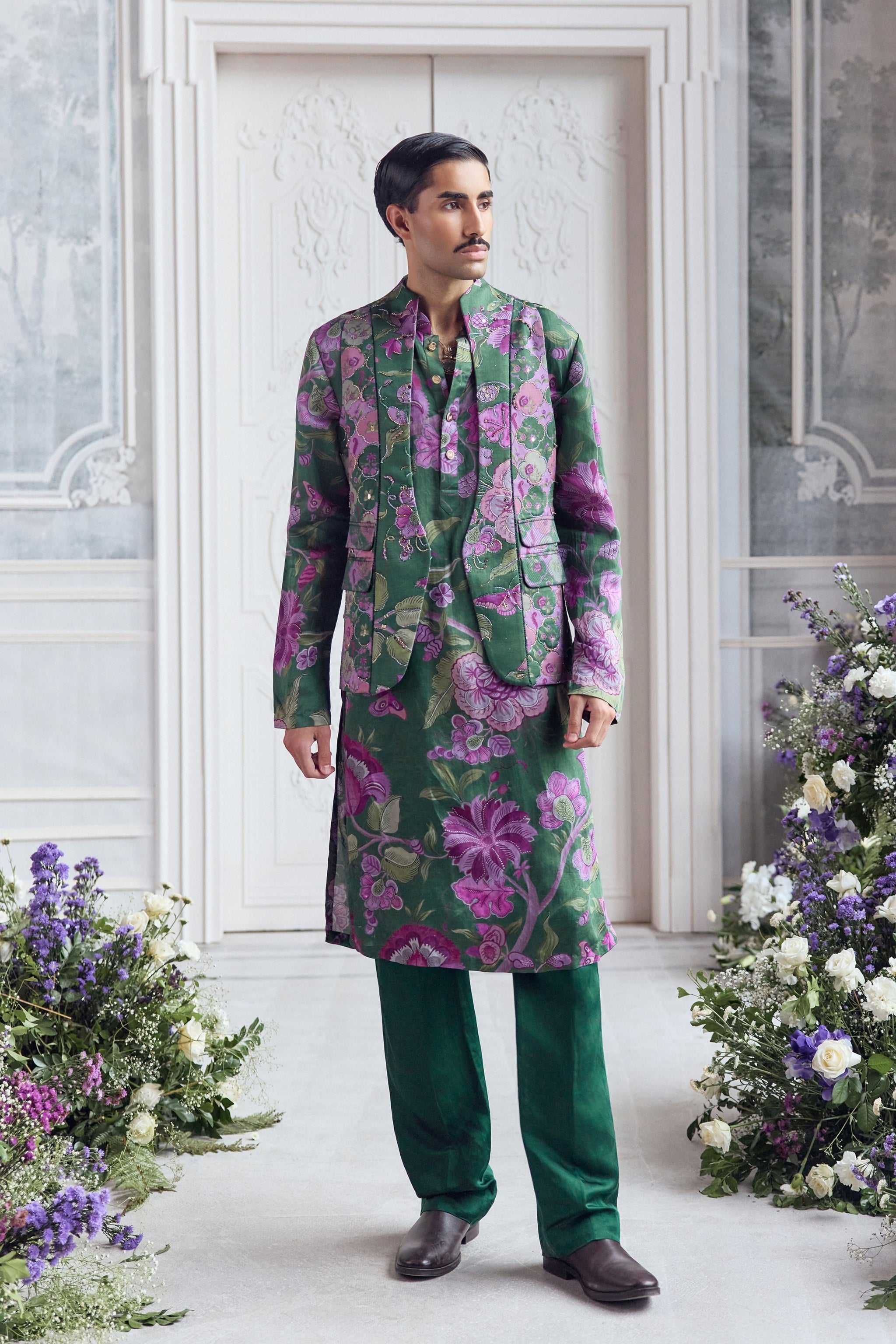 • Paneled hand embroidered bundi paired with kurta and trouser