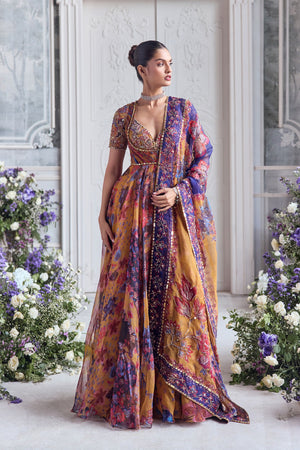 • Embroidered choli cut anarkali paired with embroidered dupatta