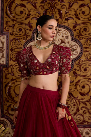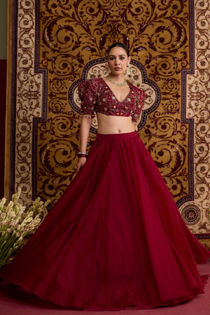• This three-piece set includes an organza lehenga featuring an exclusive in-house designed print, a stitched blouse crafted from hand-embroidered organza fabric, and an organza dupatta adorned with applique work on the borders, creating a beautifully coordinated and elegant ensemble.