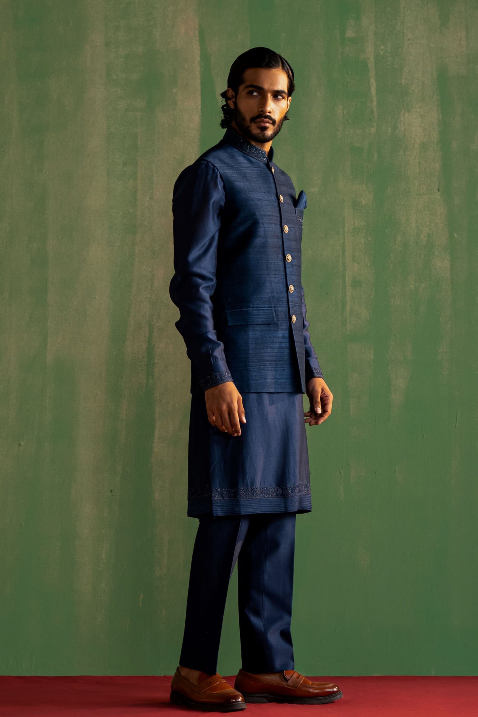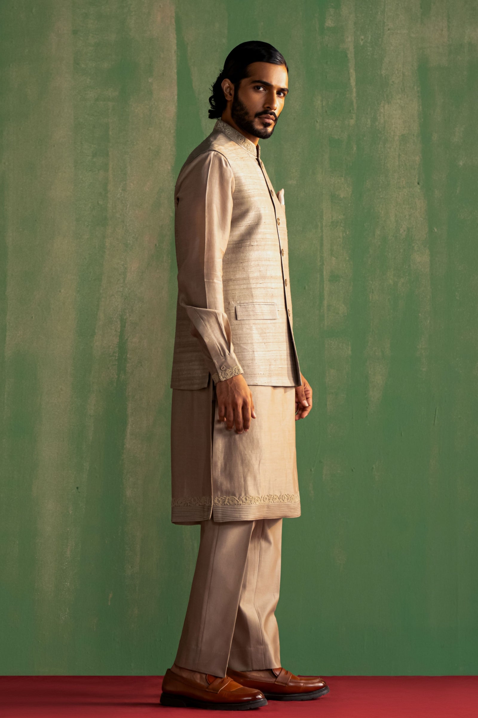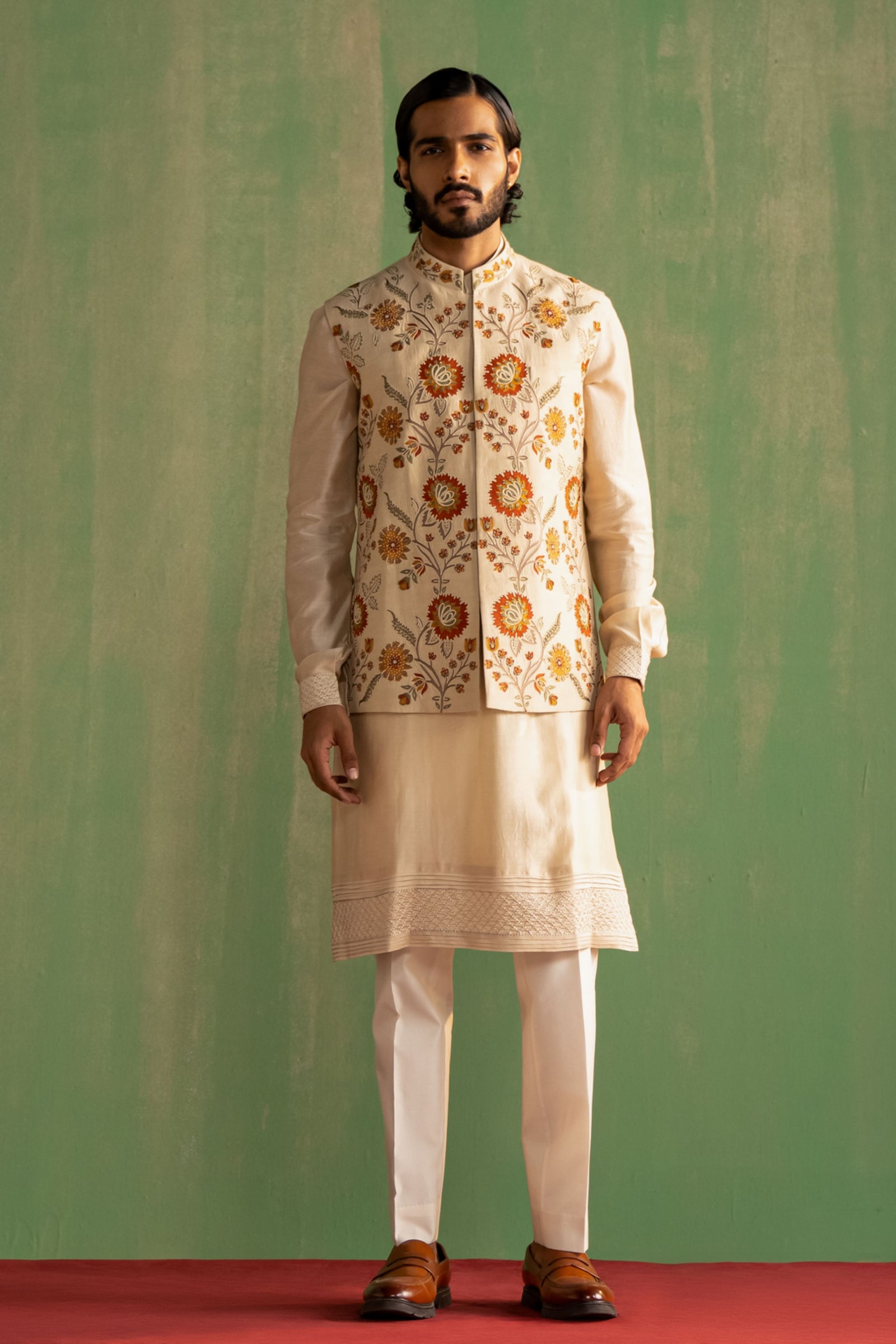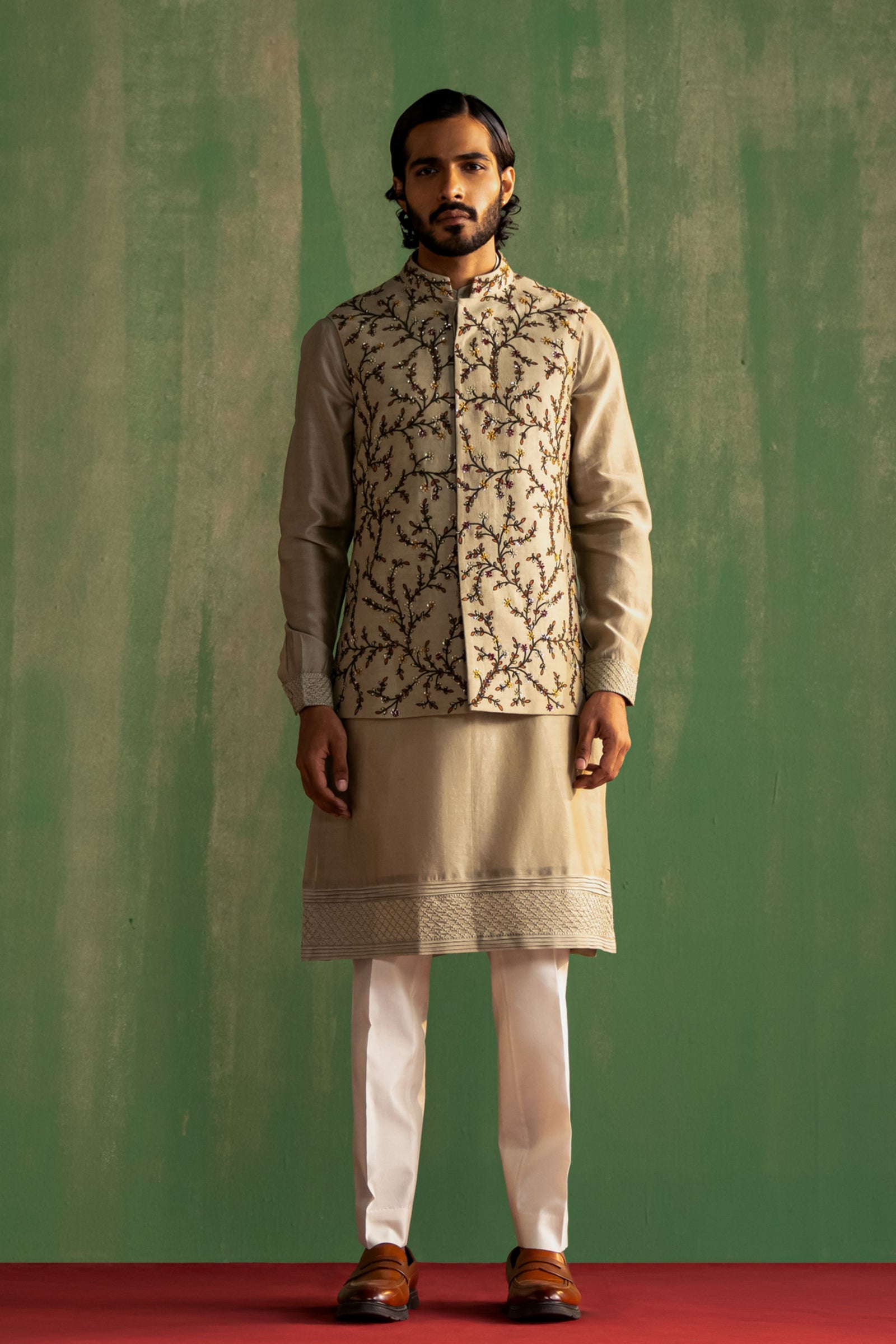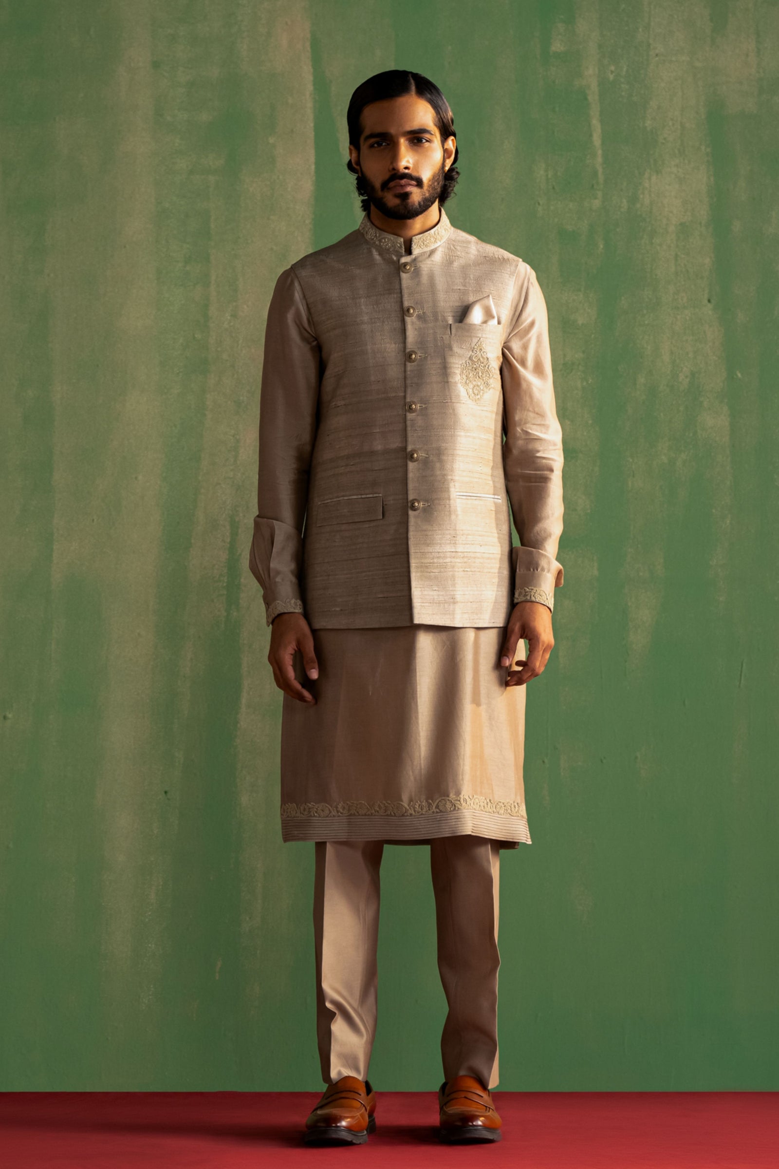 • Components: Kurta, Pant, Nehru Jacket (3)