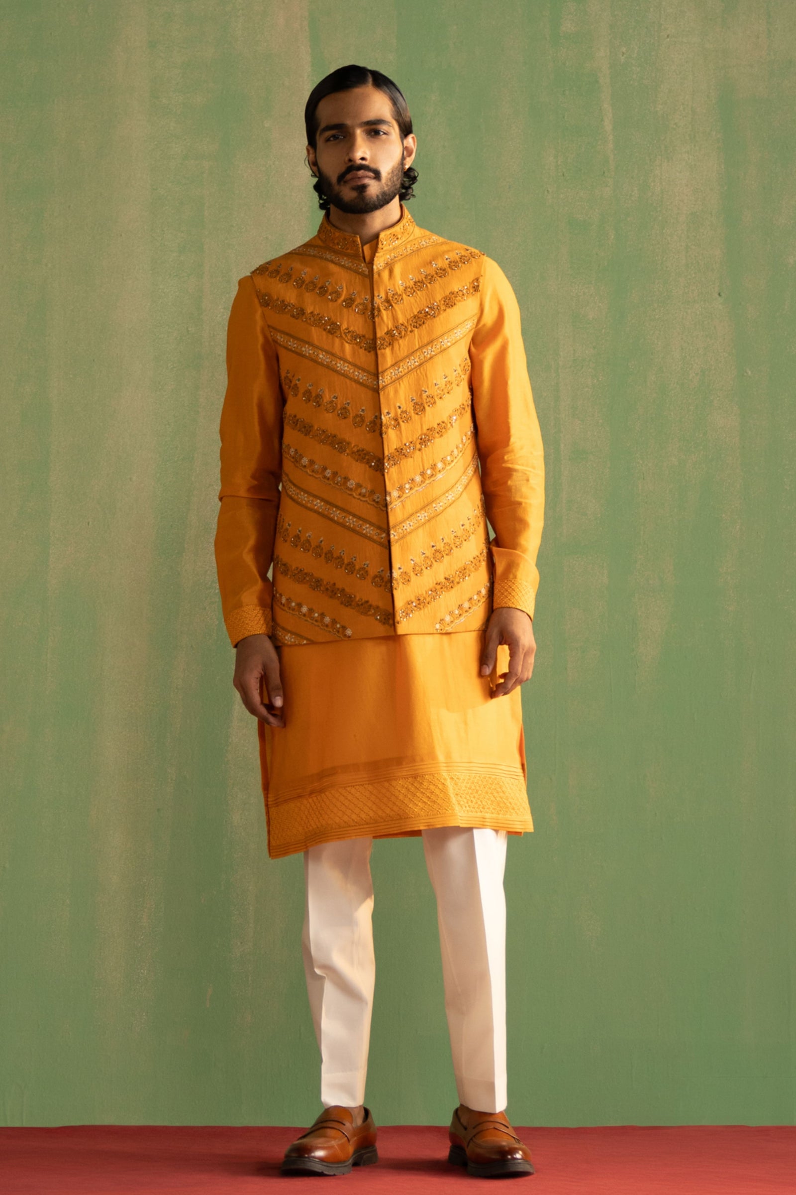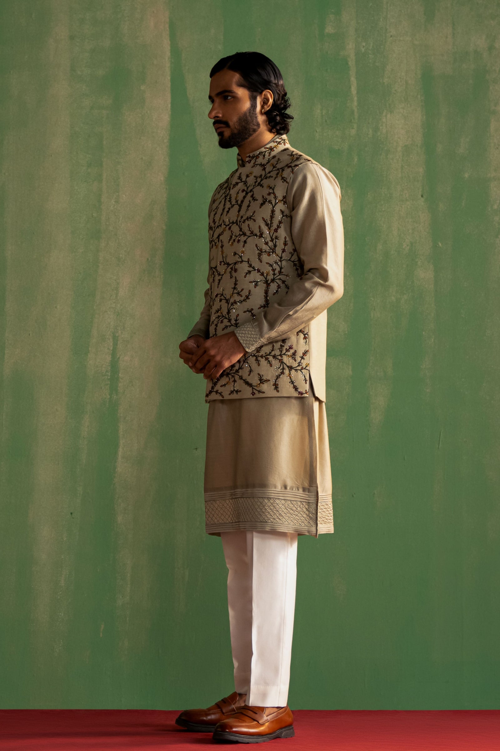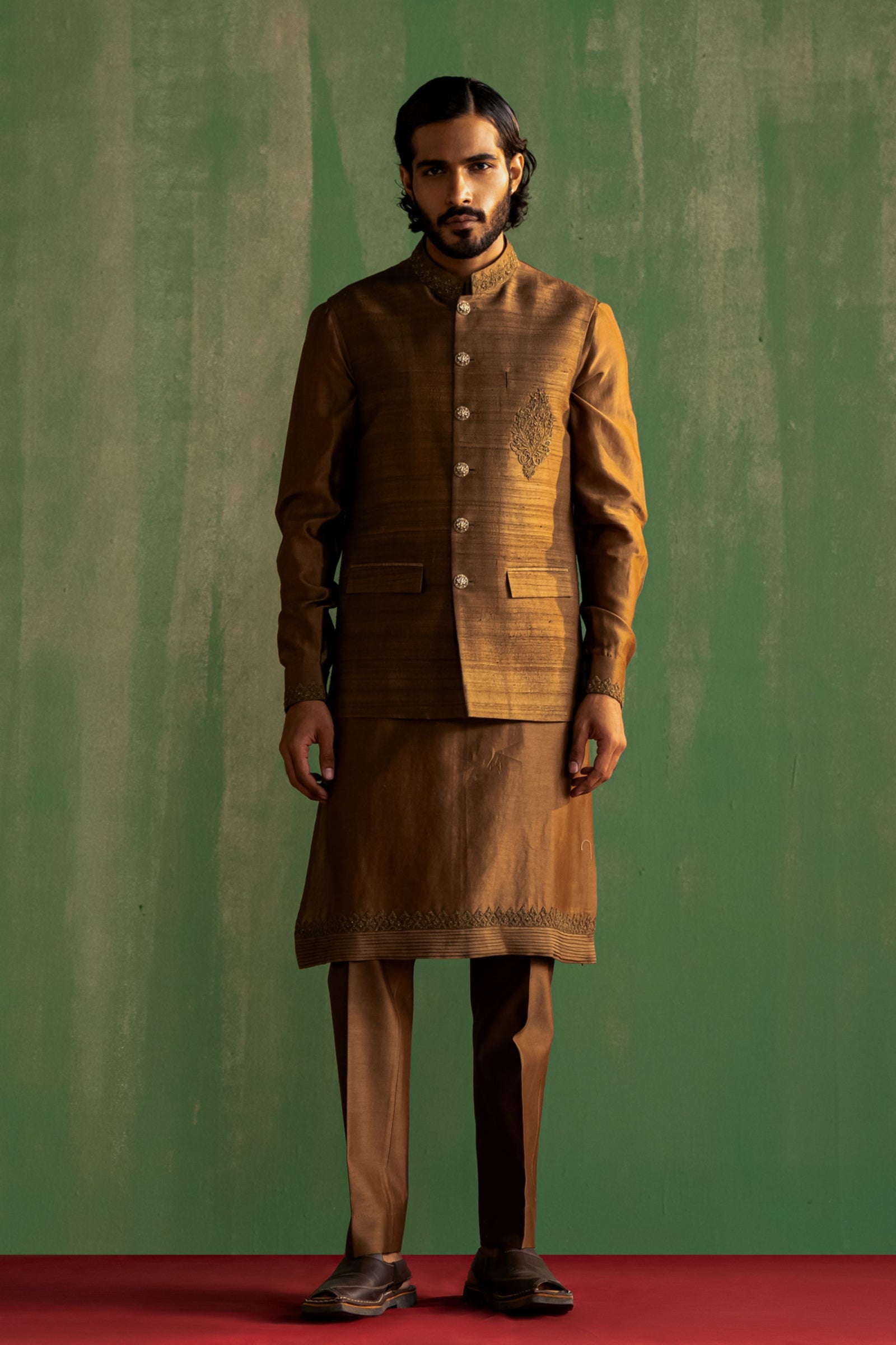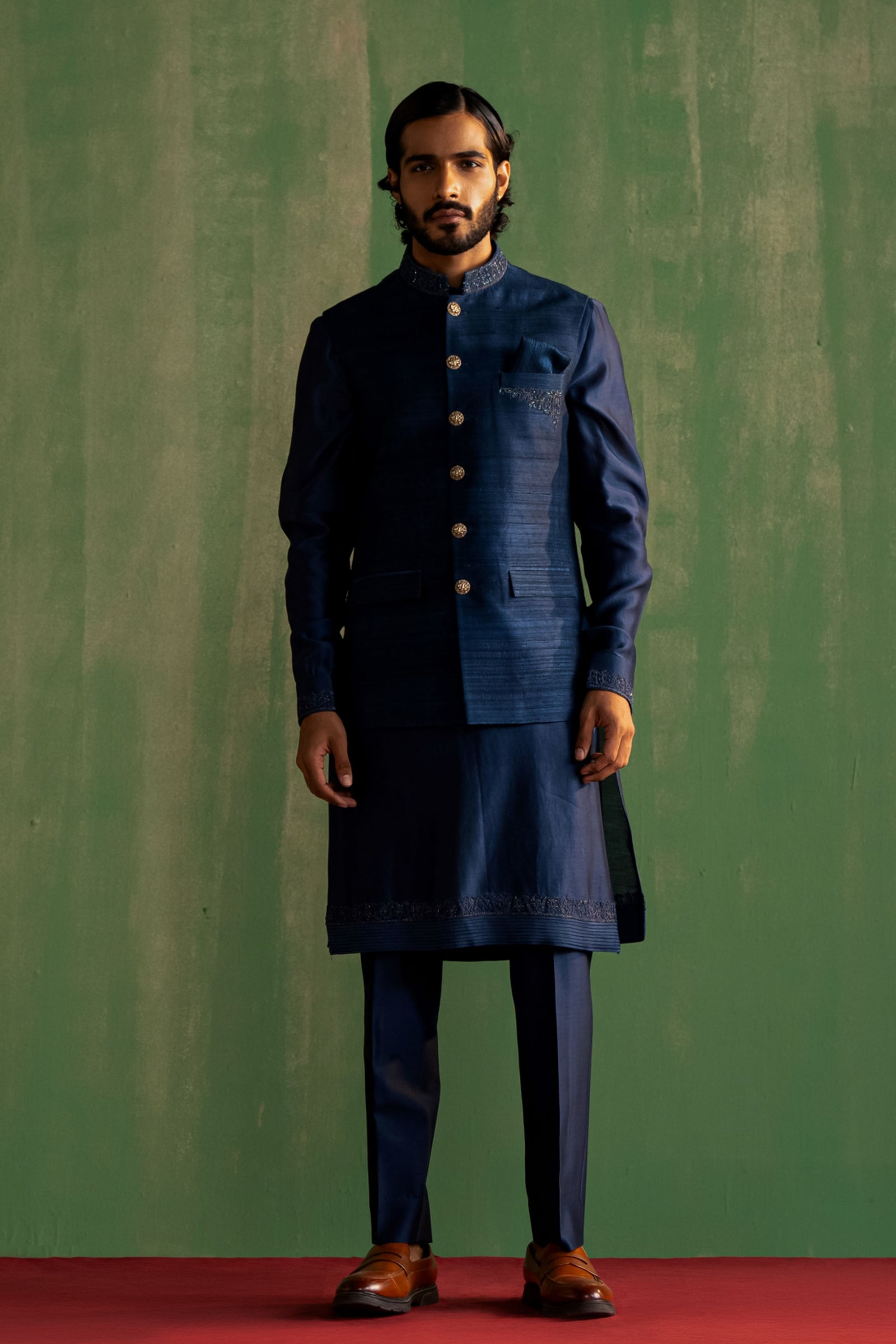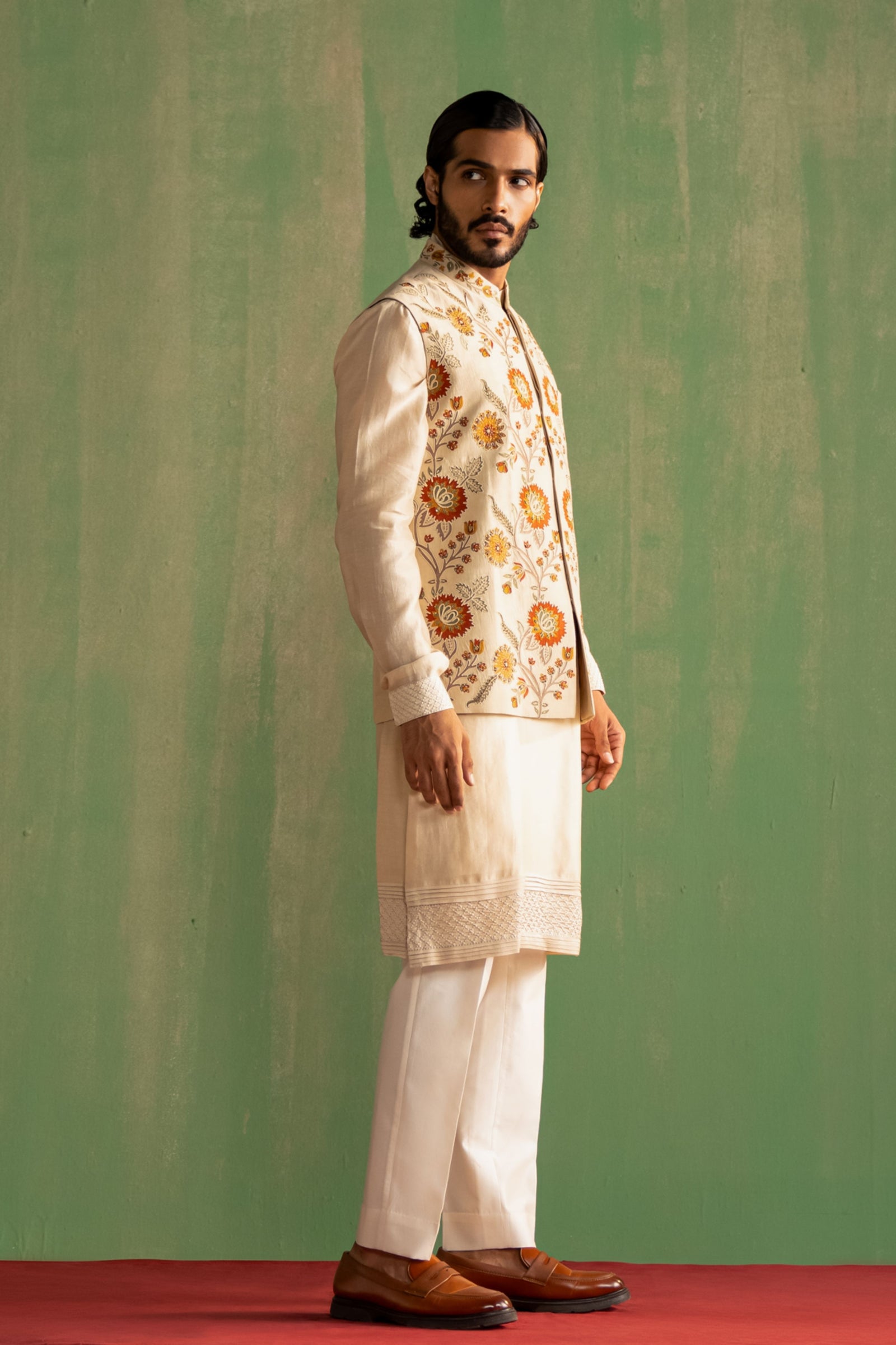 • Components: Kurta, Pant, Nehru Jacket (3)