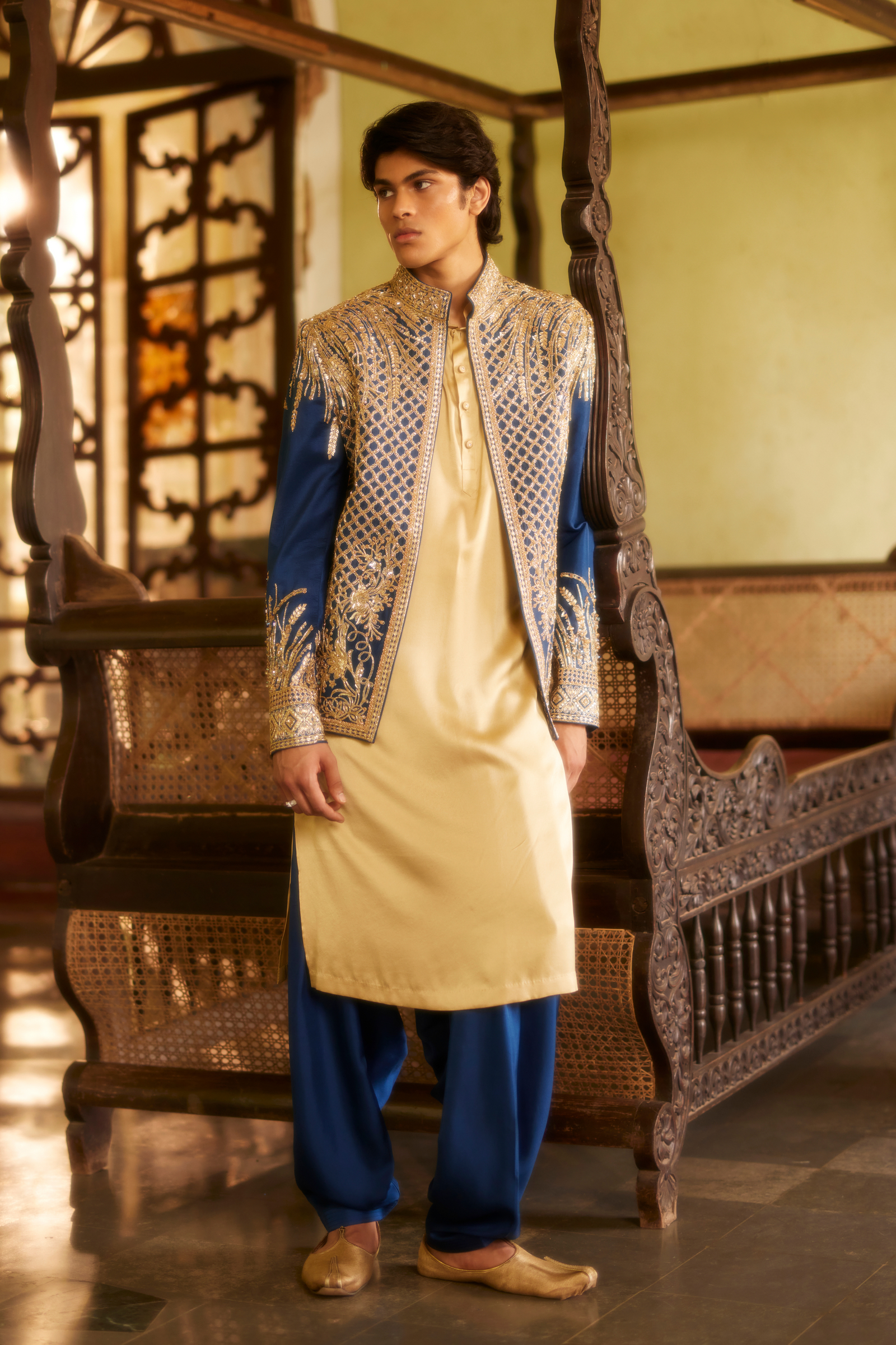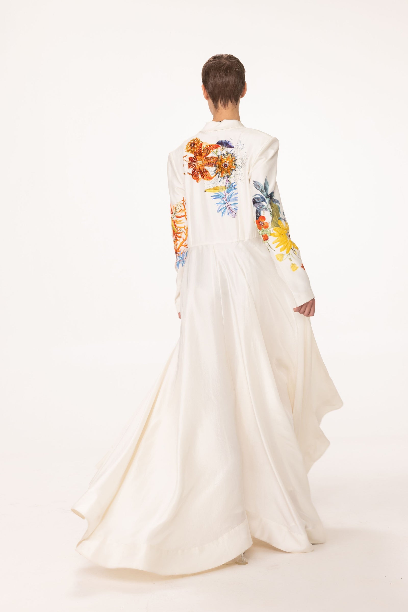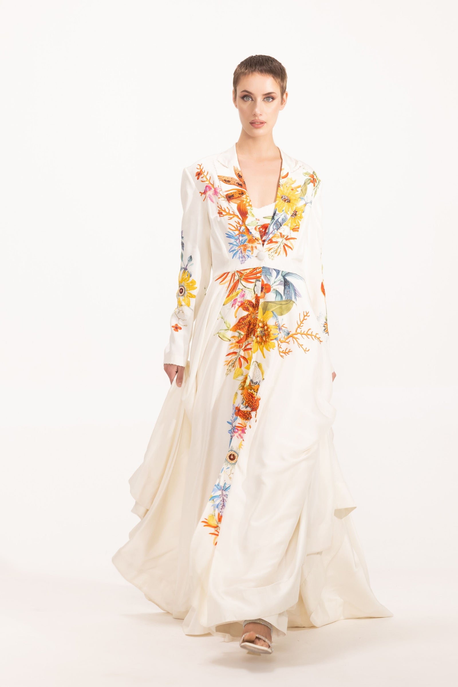 Care: Dry Clean Only. As garments are handmade and handwoven, natural variations in colours and weaves are a characteristic of the textile, and may be found in the finished garments as well.