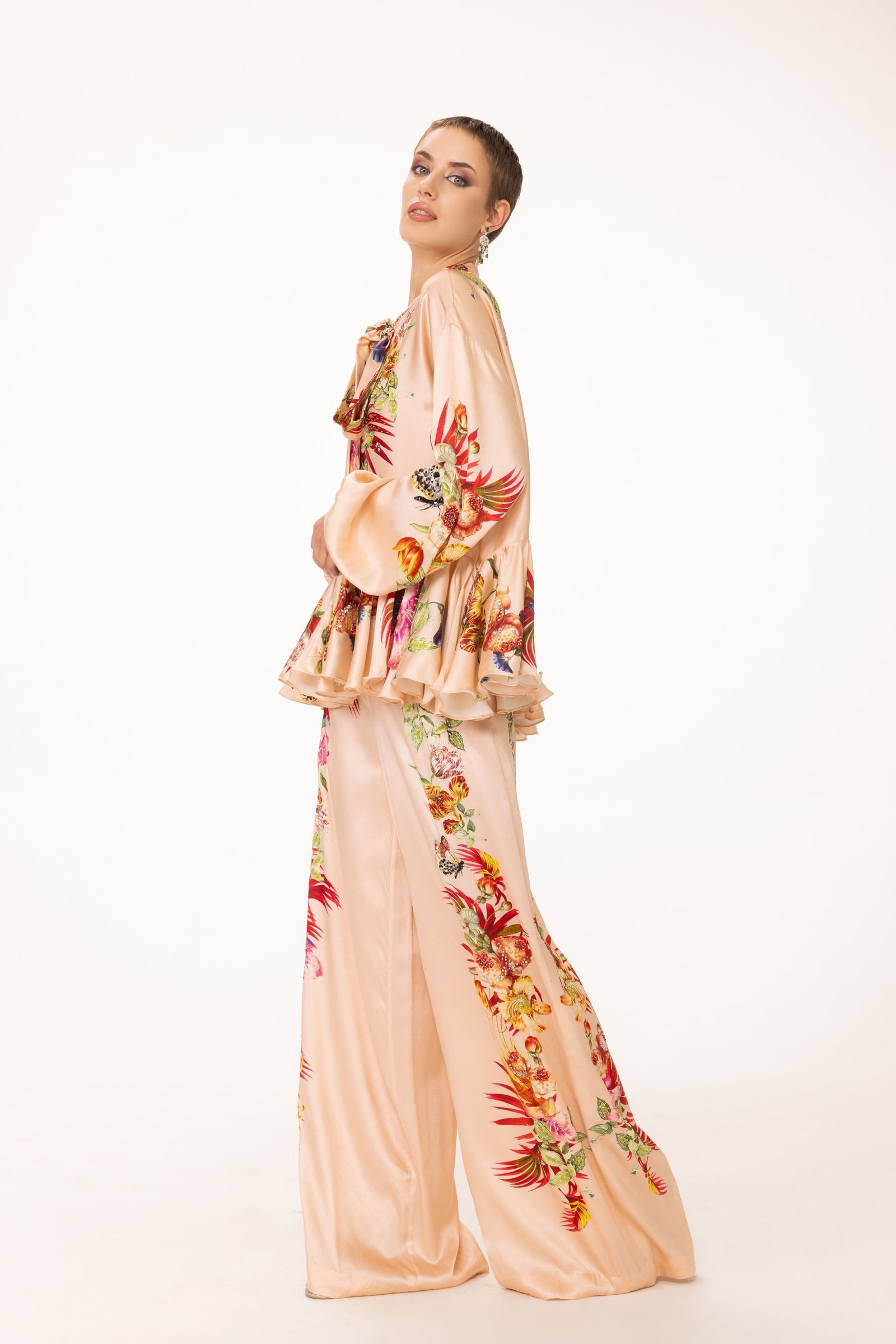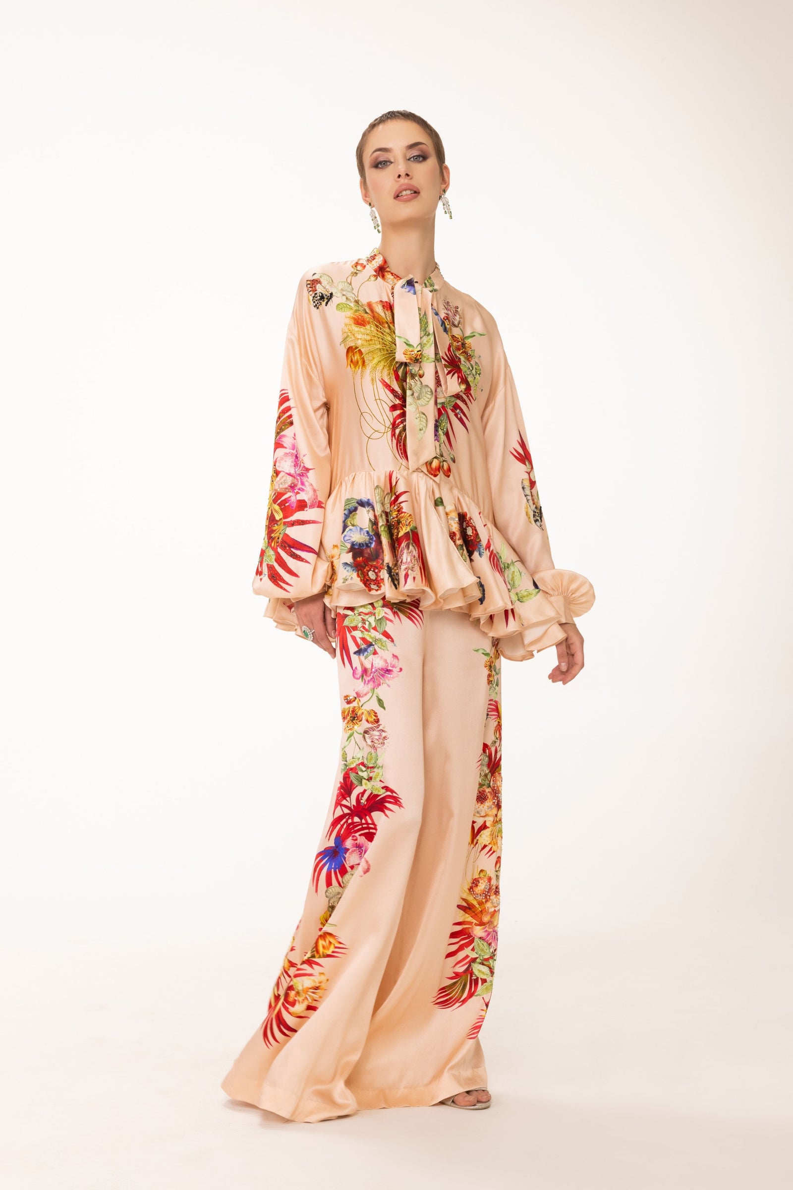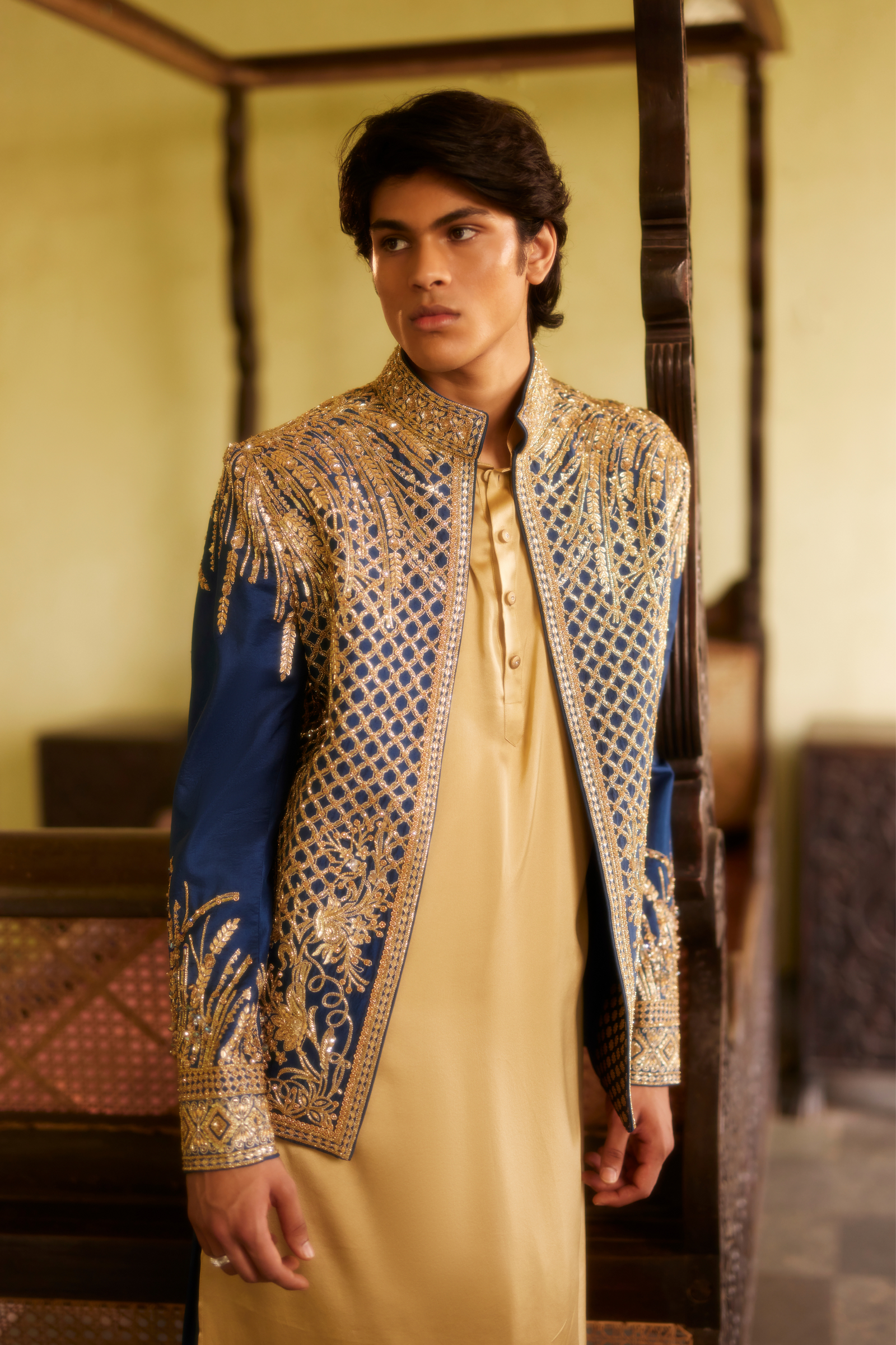 Care: Dry Clean Only. As garments are handmade and handwoven, natural variations in colours and weaves are a characteristic of the textile, and may be found in the finished garments as well.