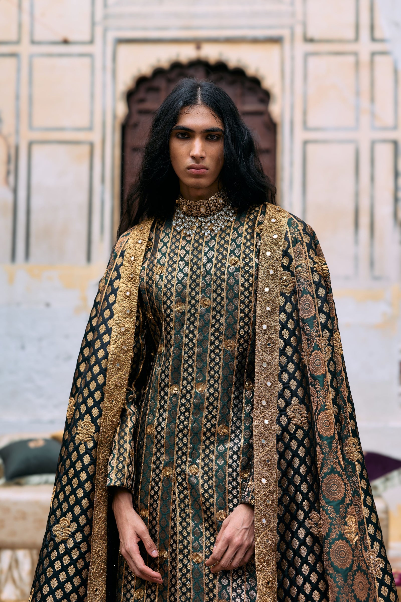Care: Dry Clean Only. As garments are handmade and handwoven, natural variations in colours and weaves are a characteristic of the textile, and may be found in the finished garments as well.