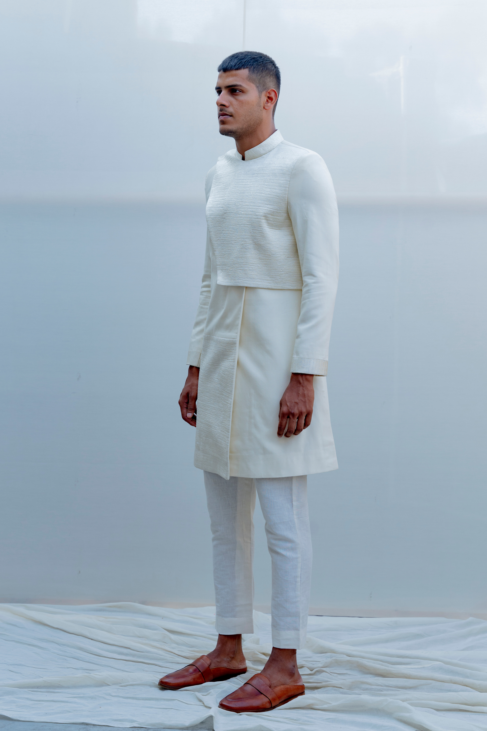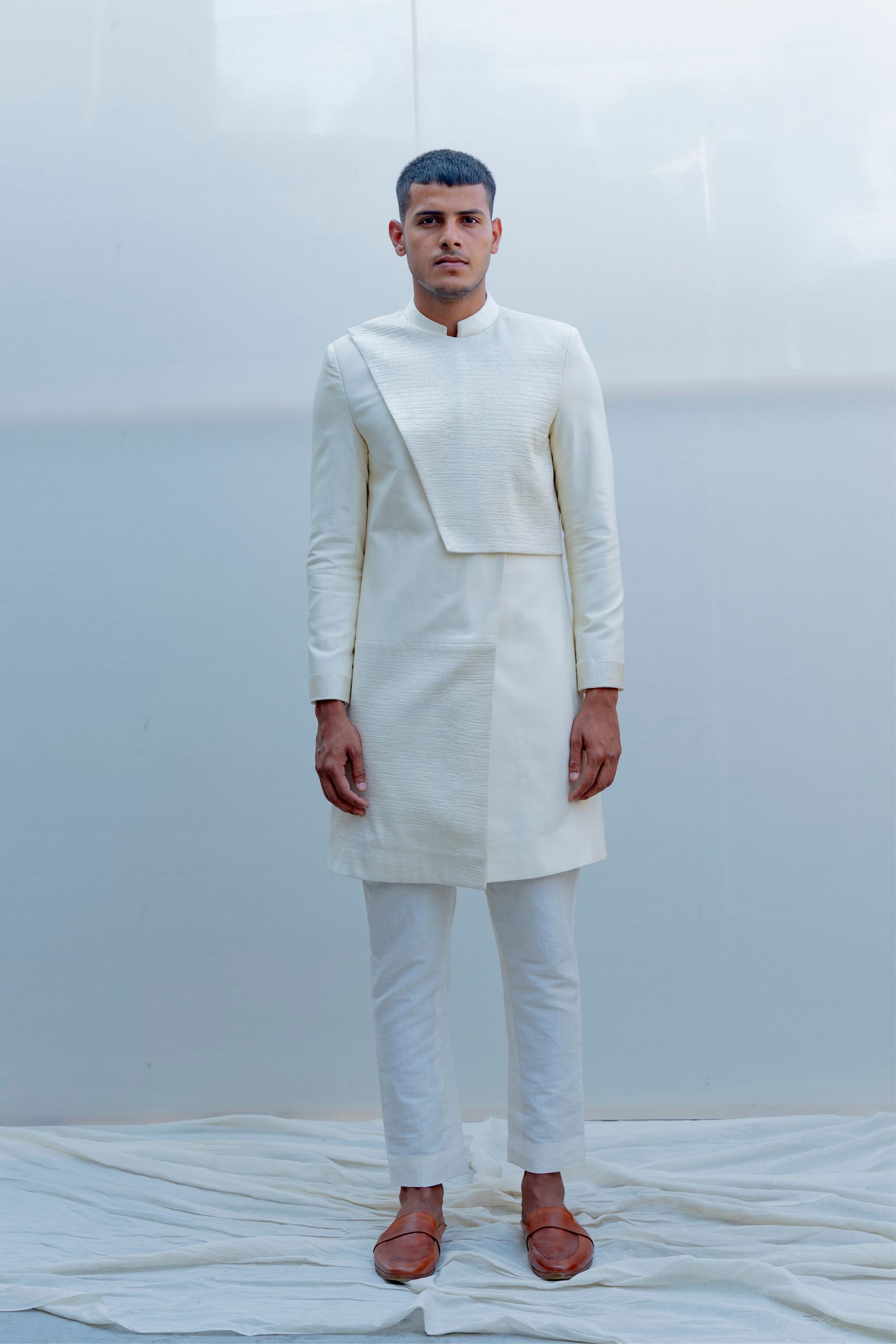 Care: Dry Clean Only. As garments are handmade and handwoven, natural variations in colours and weaves are a characteristic of the textile, and may be found in the finished garments as well.