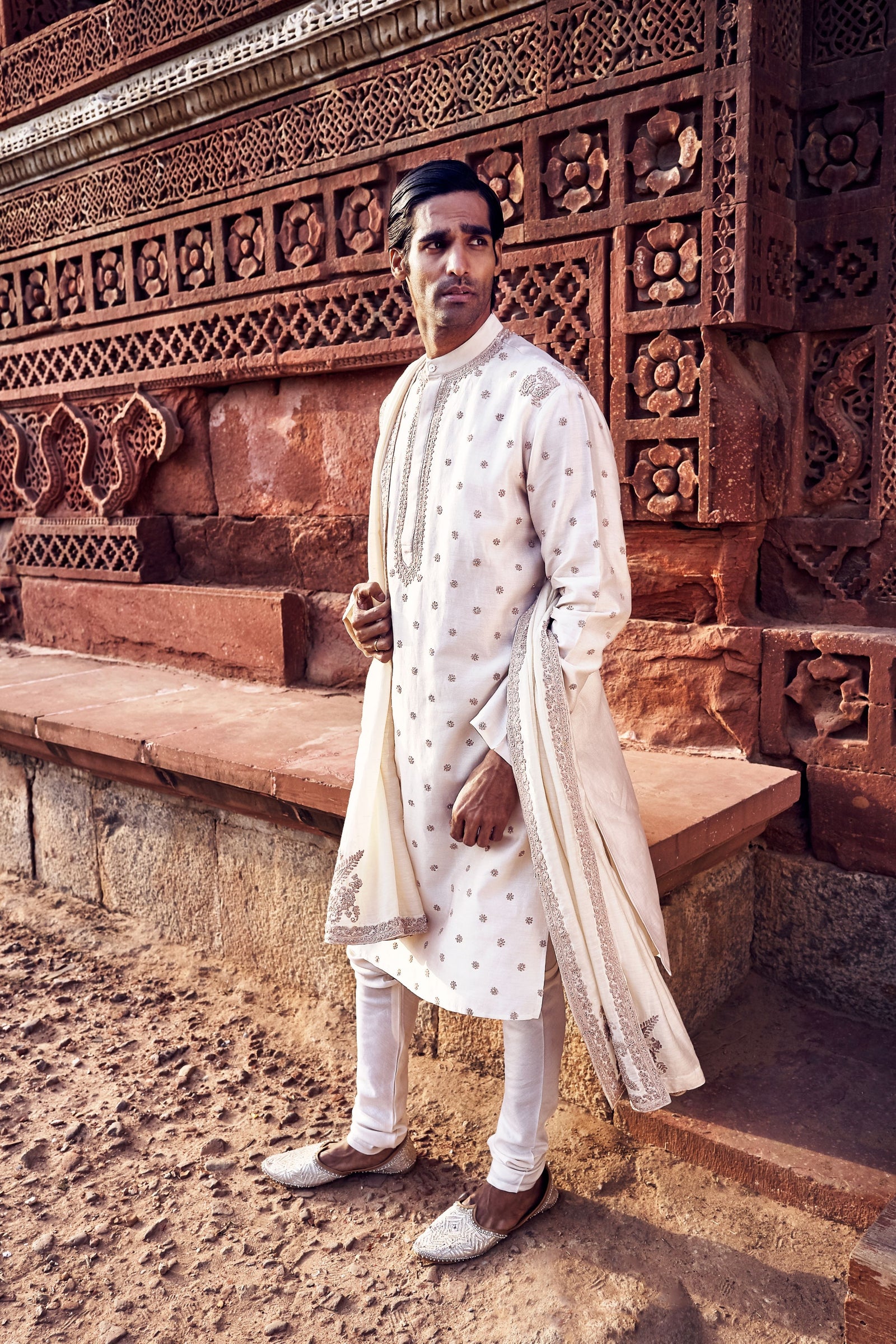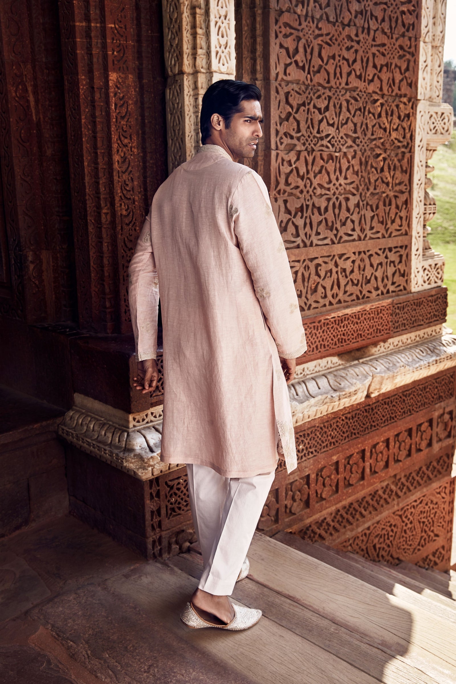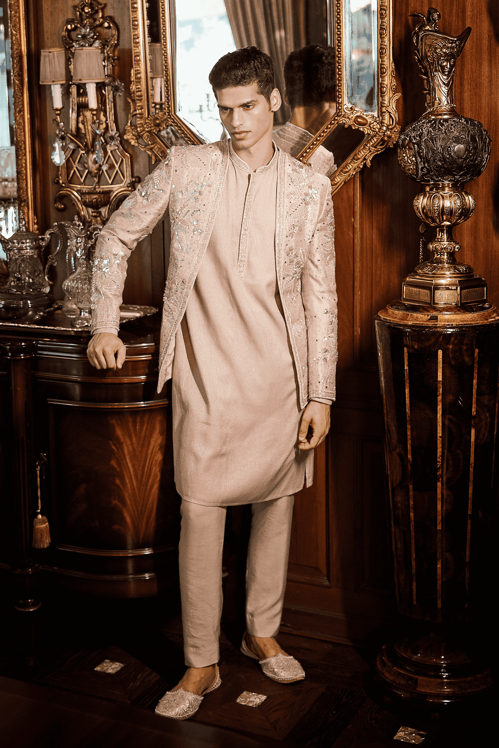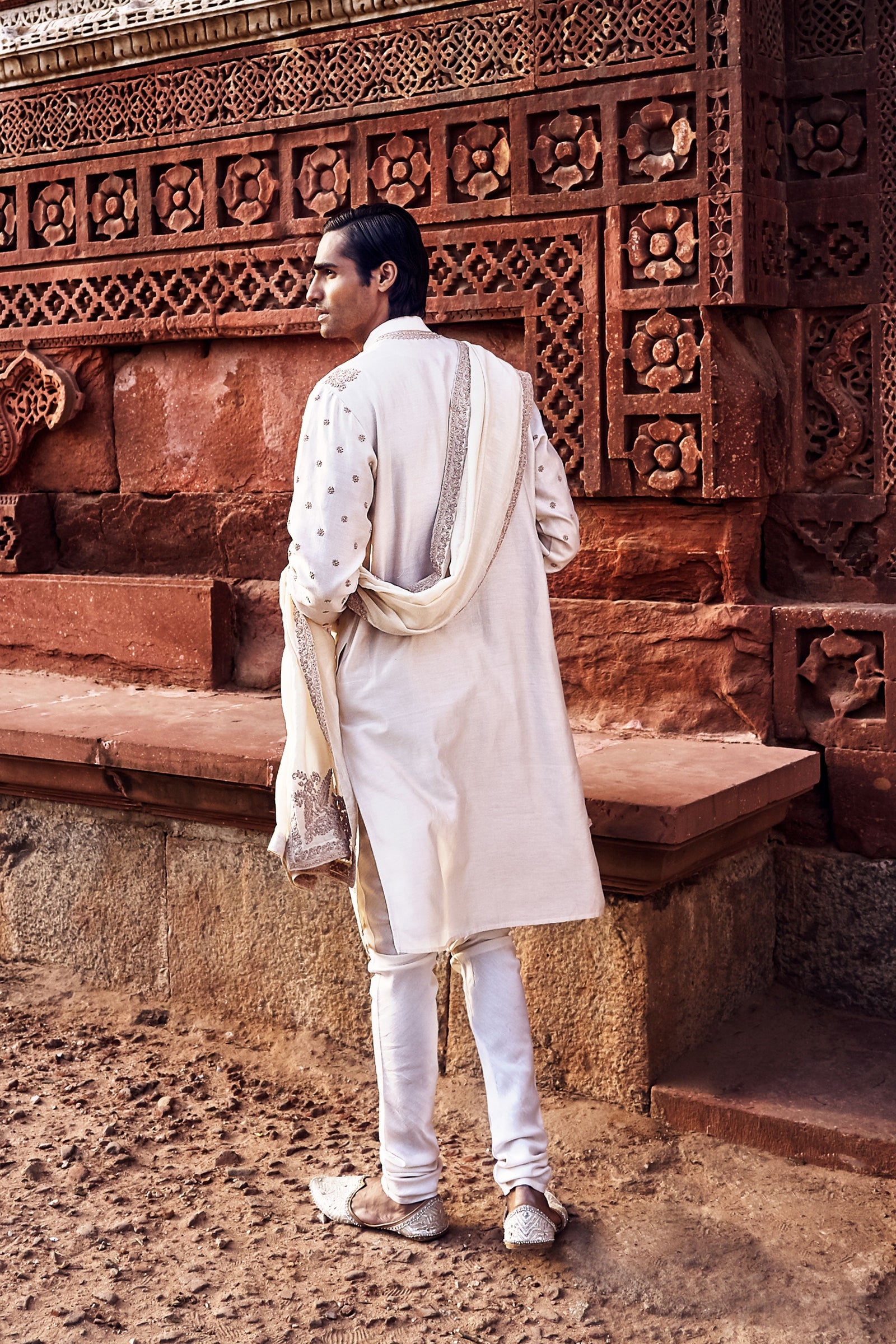 Care: Dry Clean Only. As garments are handmade and handwoven, natural variations in colours and weaves are a characteristic of the textile, and may be found in the finished garments as well.