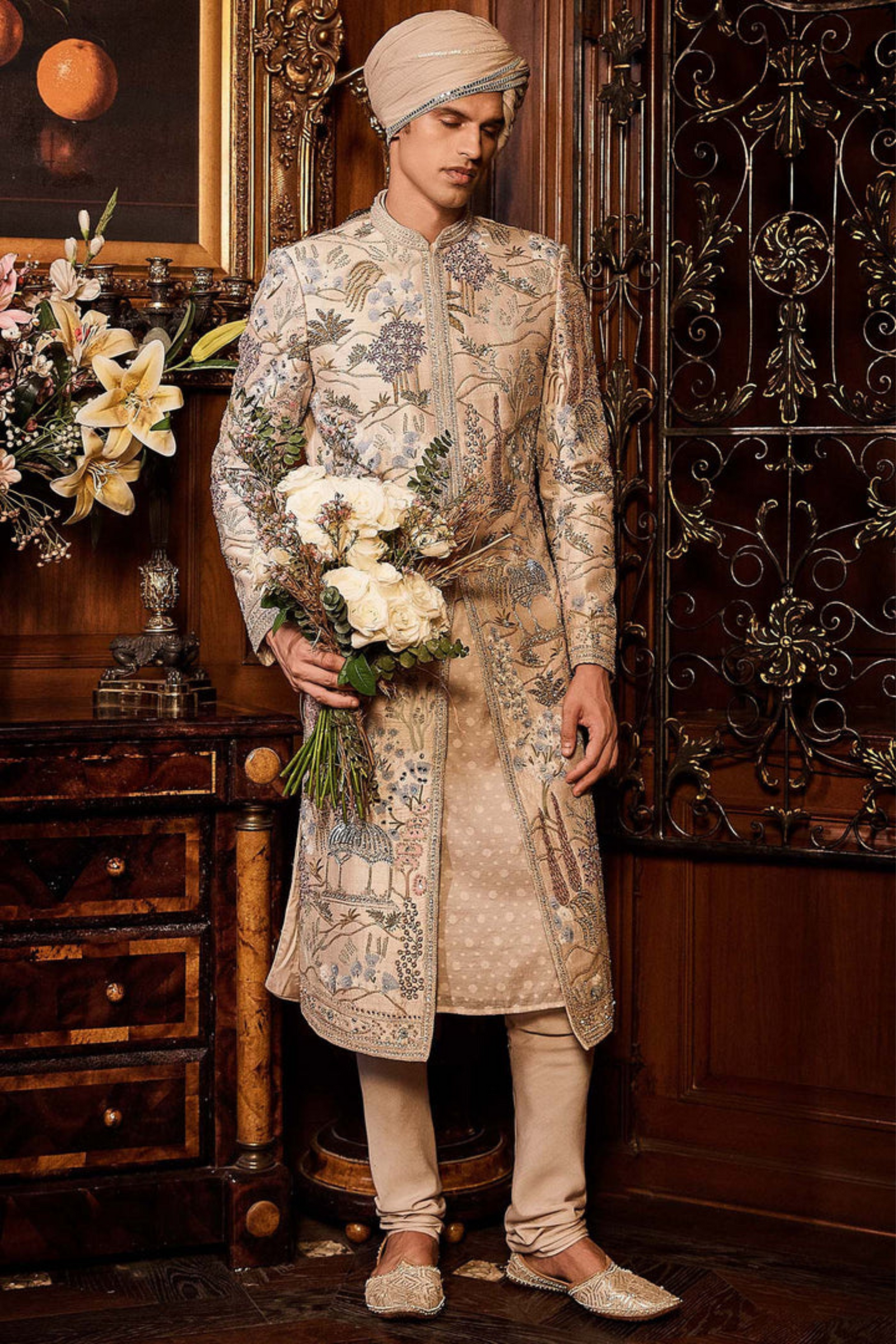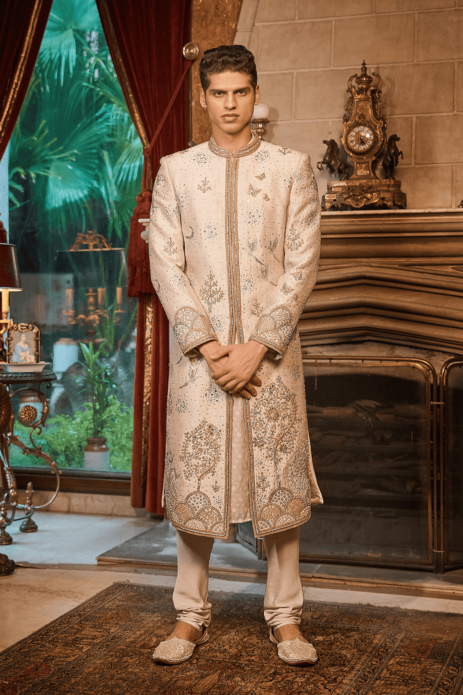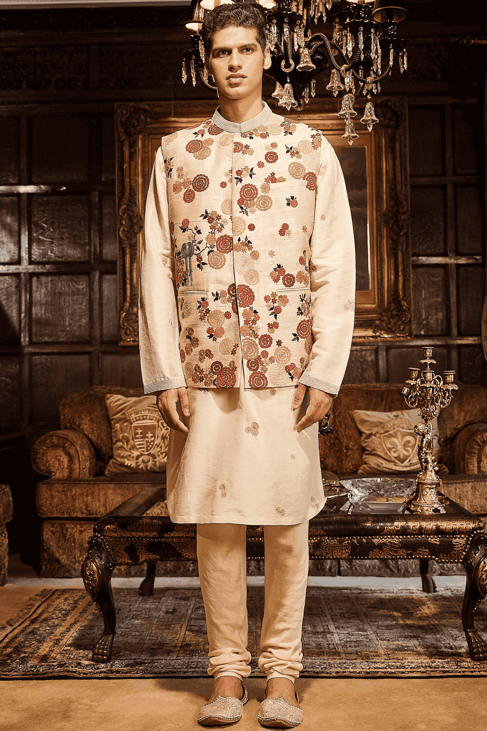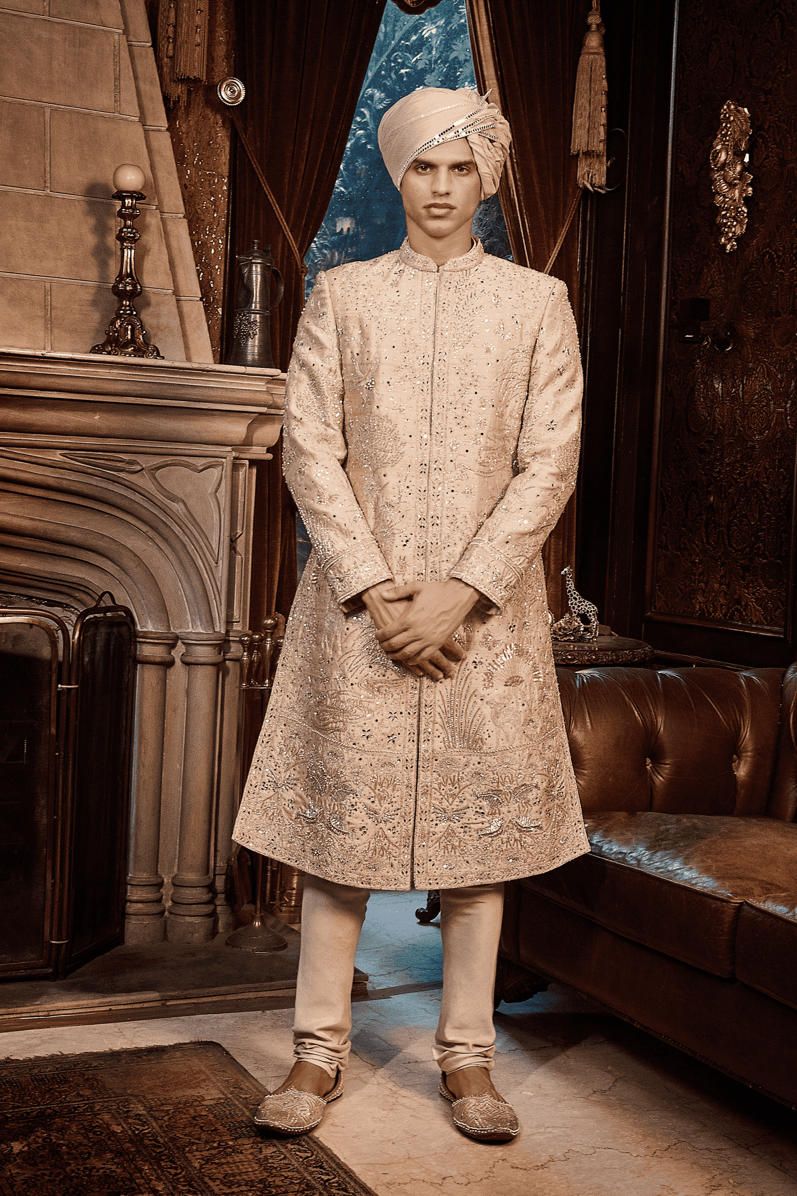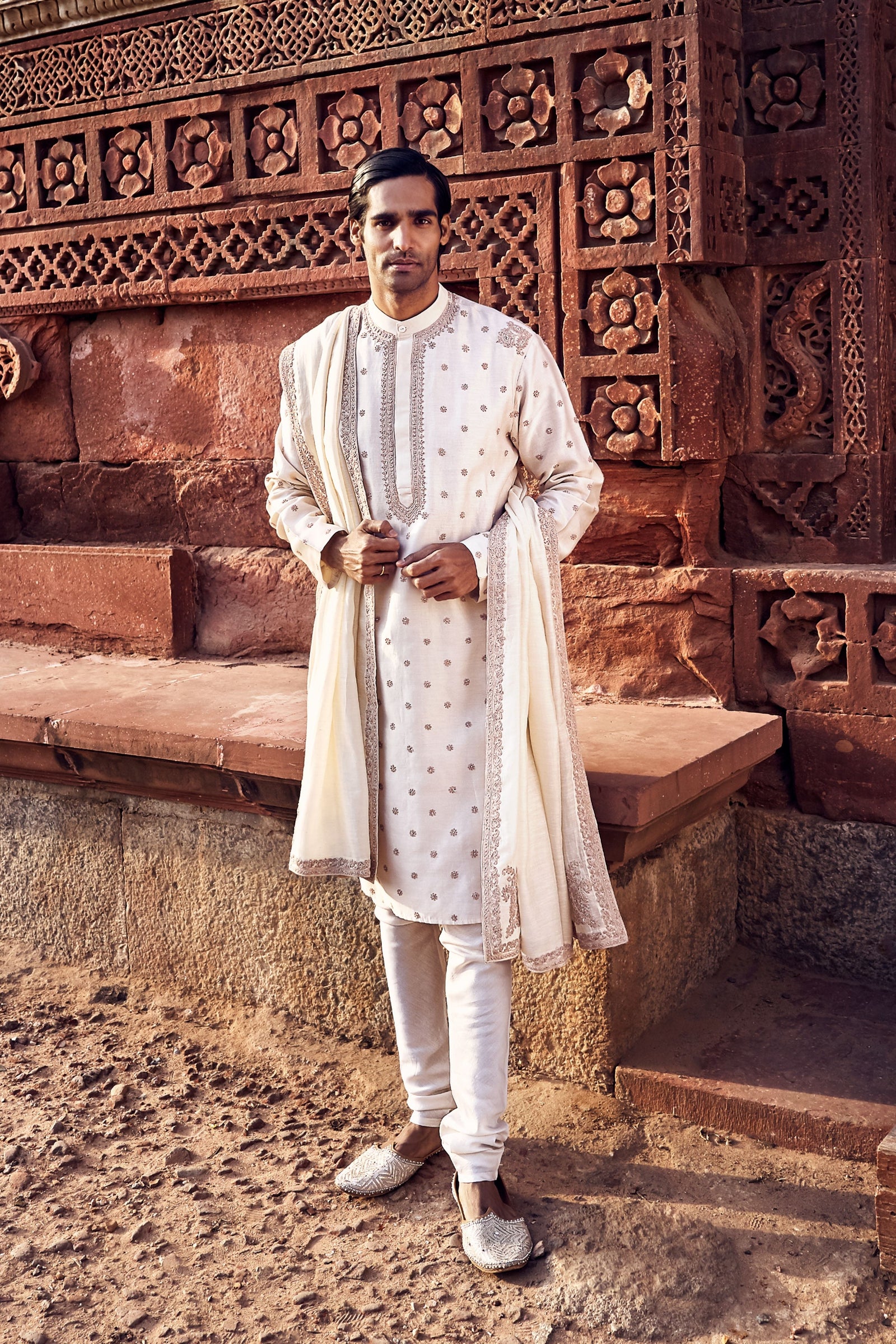 Care: Dry Clean Only. As garments are handmade and handwoven, natural variations in colours and weaves are a characteristic of the textile, and may be found in the finished garments as well.