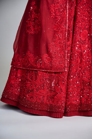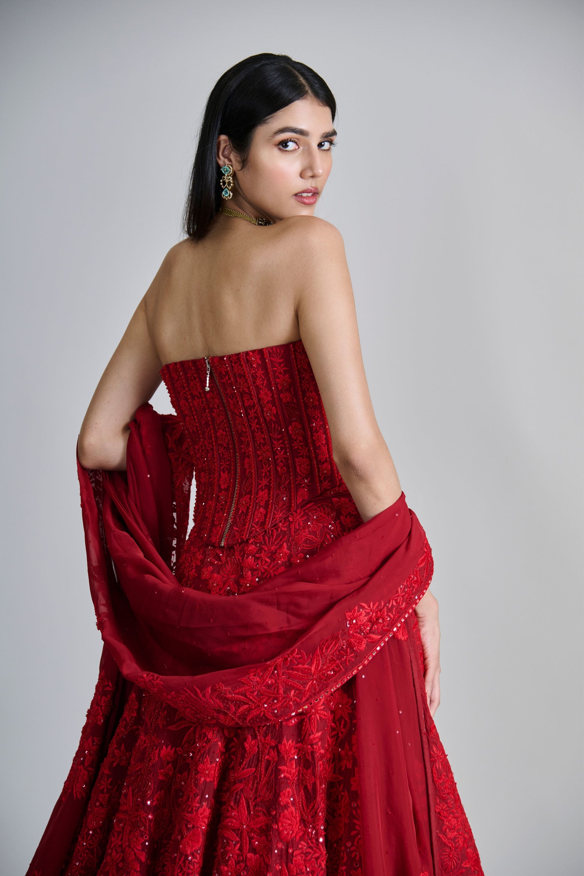 • Fabric: Lehenga, Dupatta- Organza, Corset- Tulle