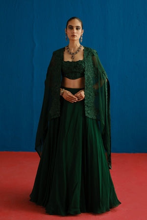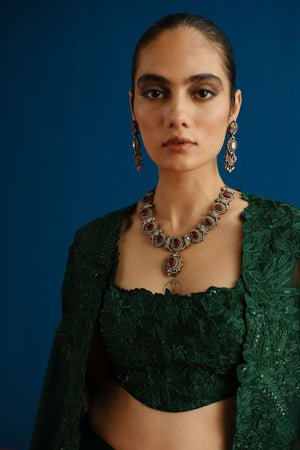 • Tonal wildflower organza cape with wildflower bustier and skirt