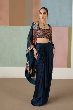 Navy Blue Lea Cape Set
