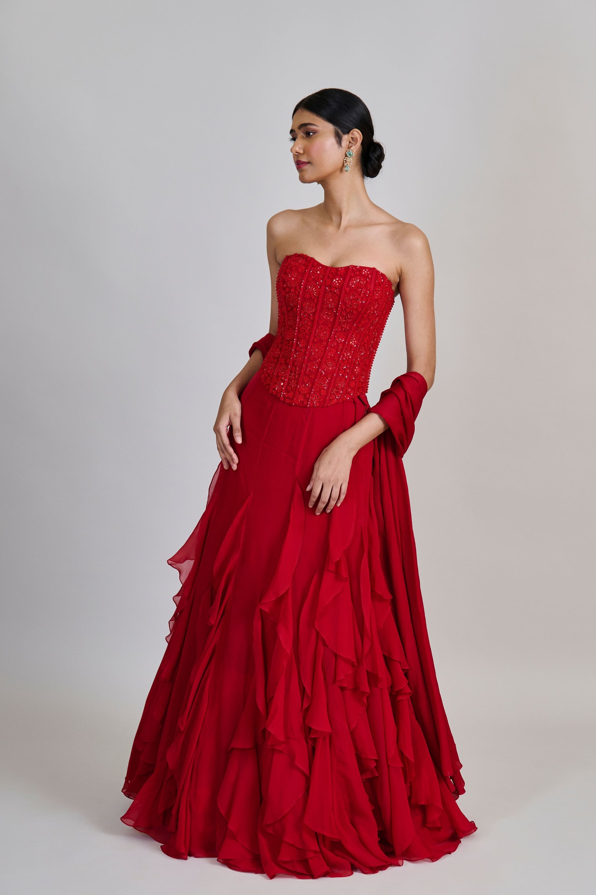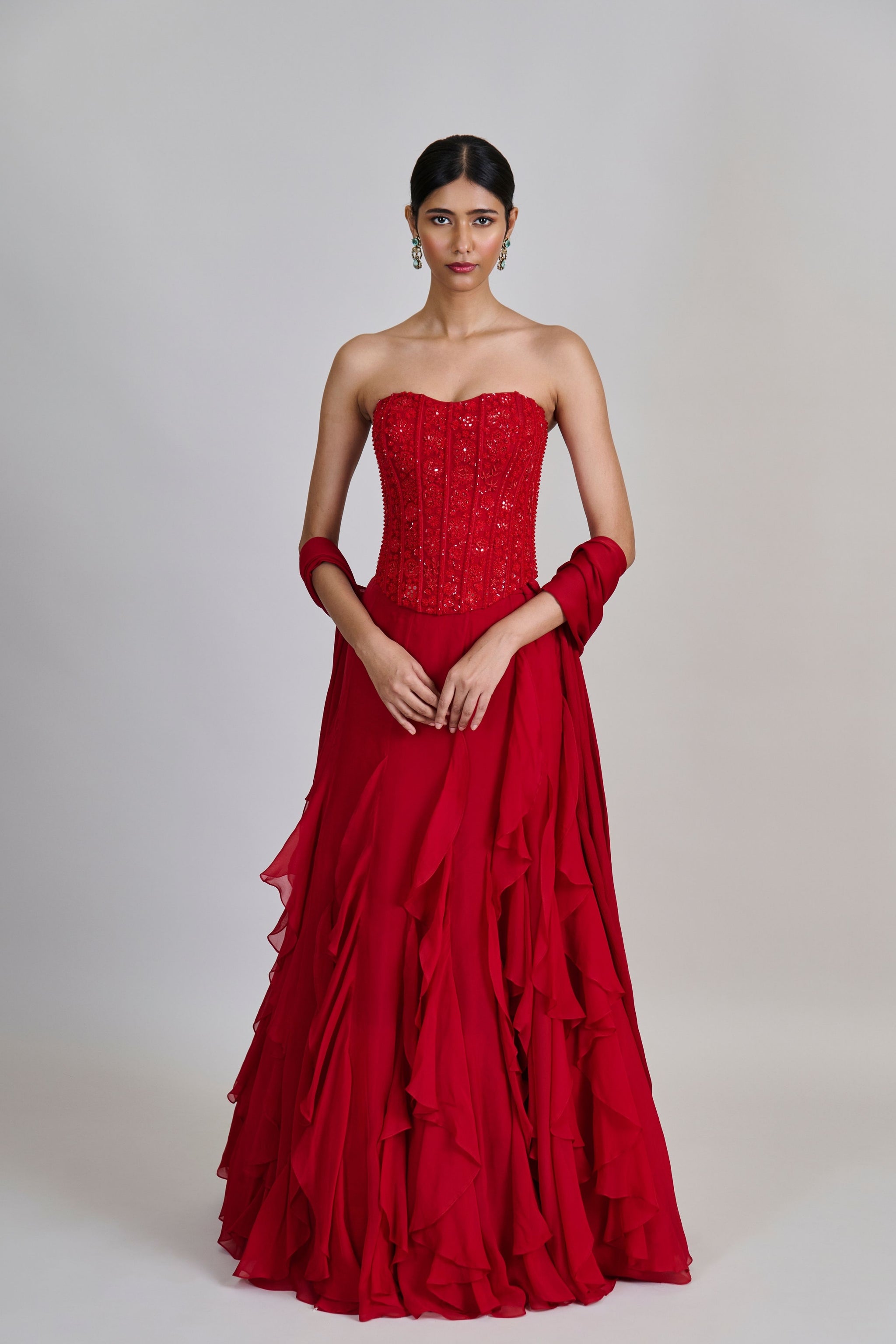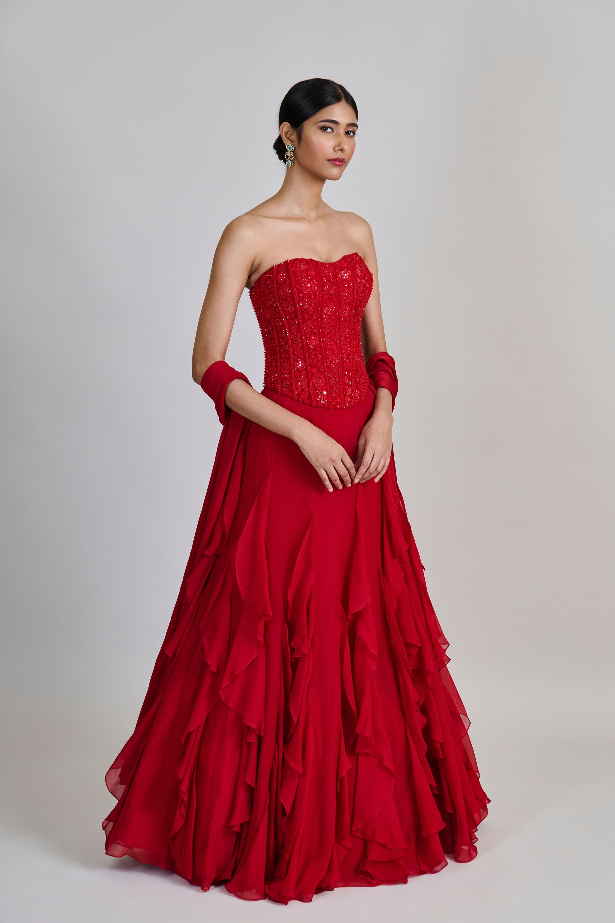 • Fabric: Lehenga- Organza, Corset- Tulle, Dupatta- Chiffon