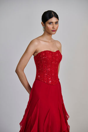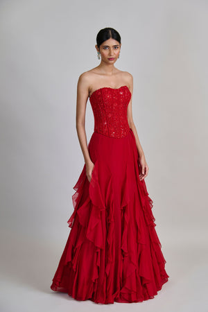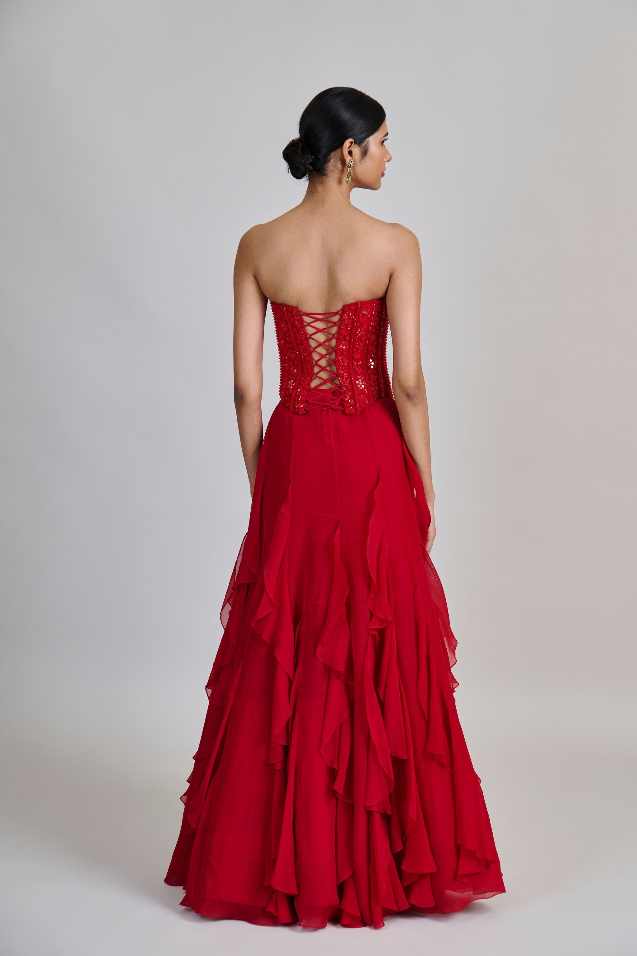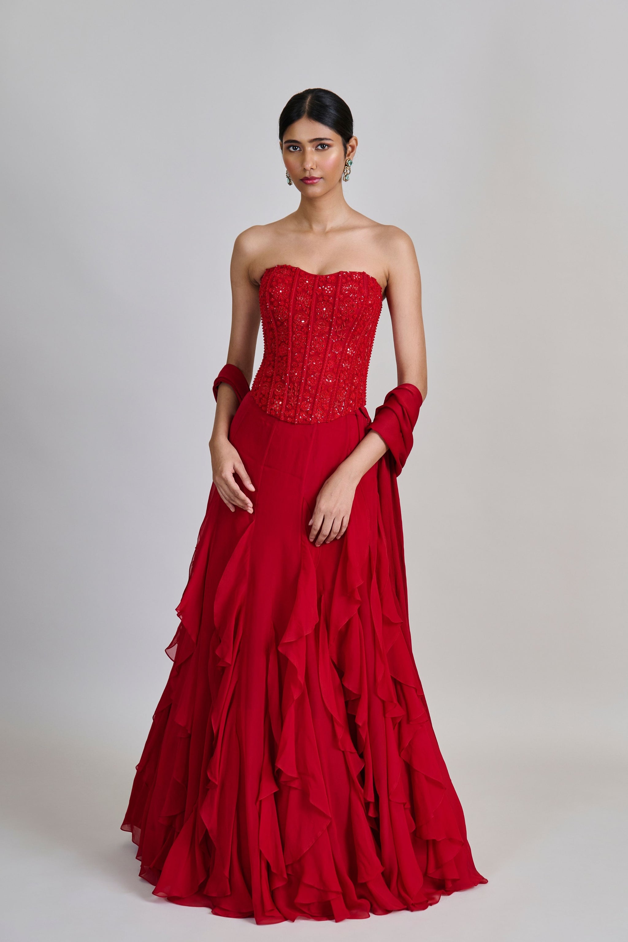 • Fabric: Lehenga- Organza, Corset- Tulle, Dupatta- Chiffon