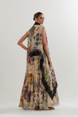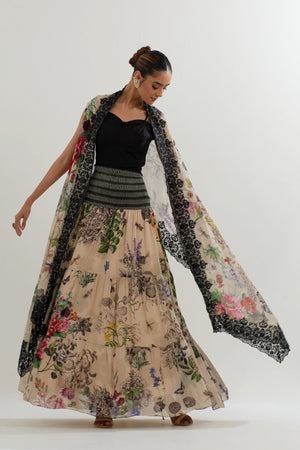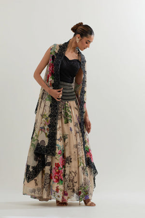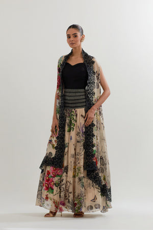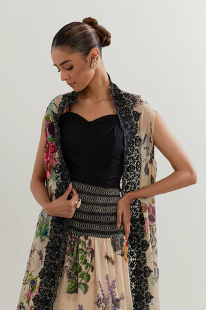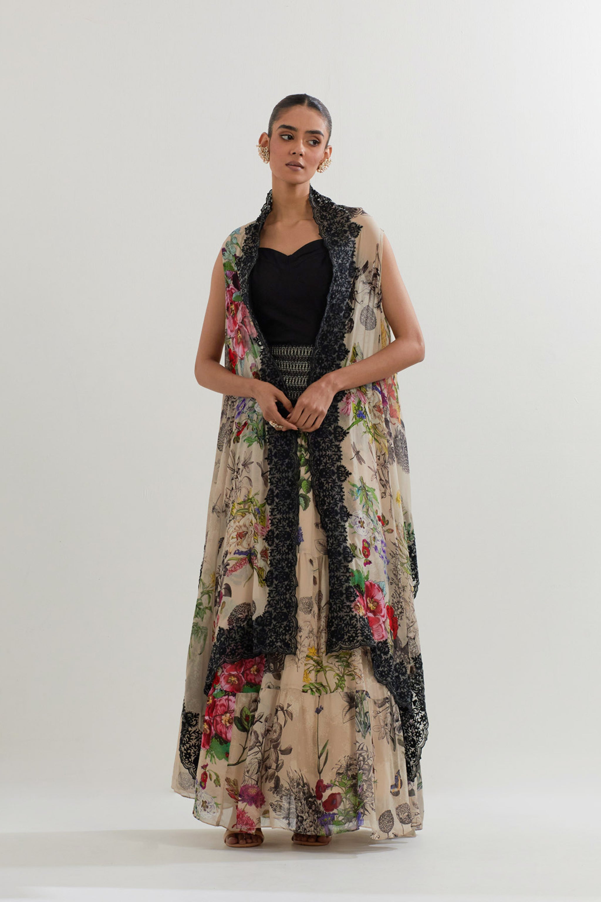 • Botanical Printed Cape Paired With Stretch Inner and Printed Skirt